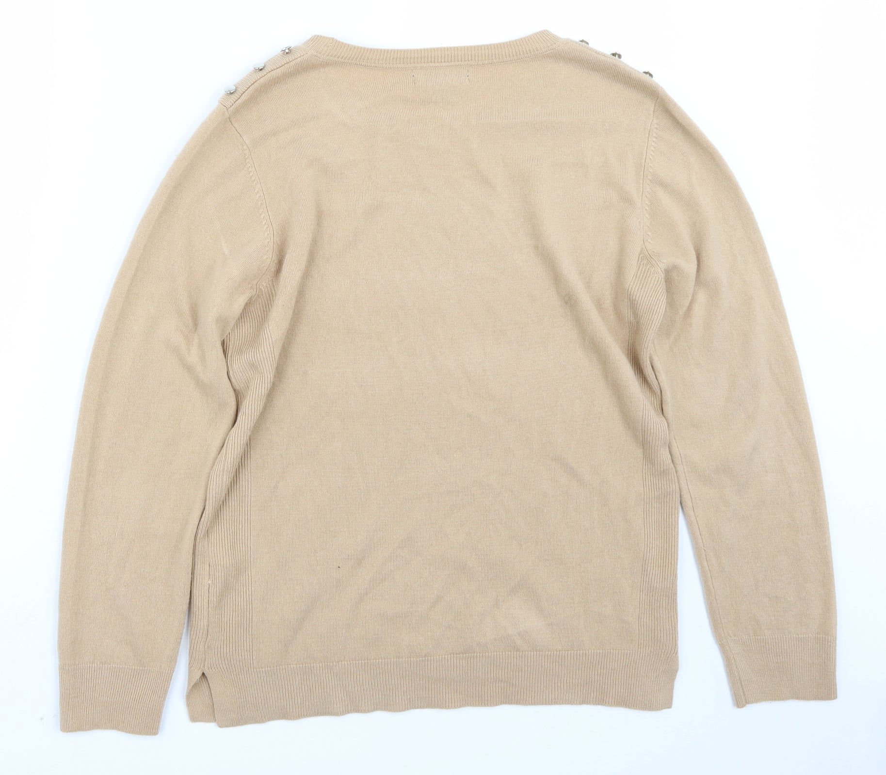 Marks and Spencer Women Beige Long Sleeve Cable-Knit Cardigan Size 14