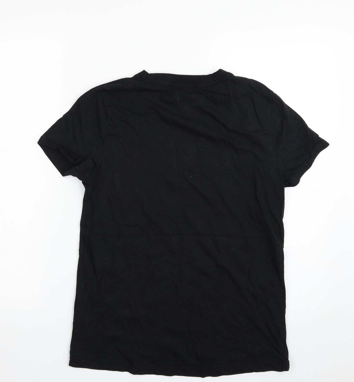 Womens Black 100% Cotton Basic T-Shirt Size 6 Crew Neck - Mickey Mouse