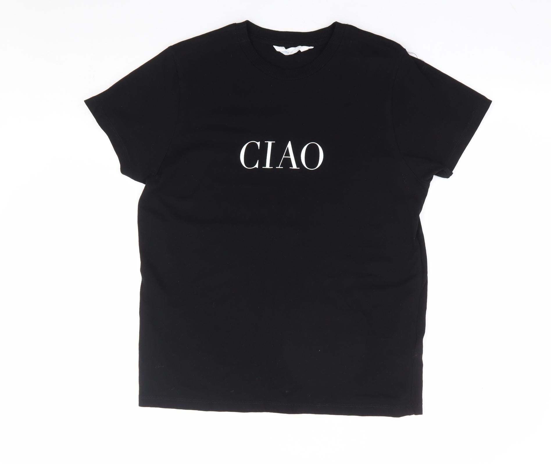 Womens Black 100% Cotton Basic T-Shirt Size 6 Round Neck - Ciao