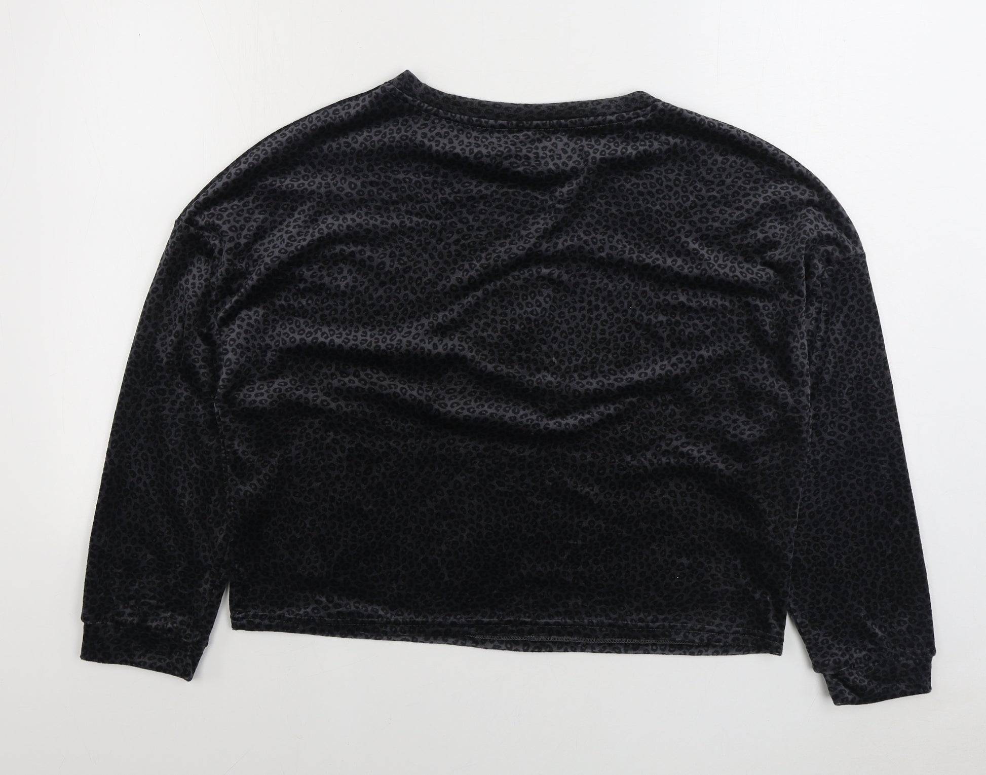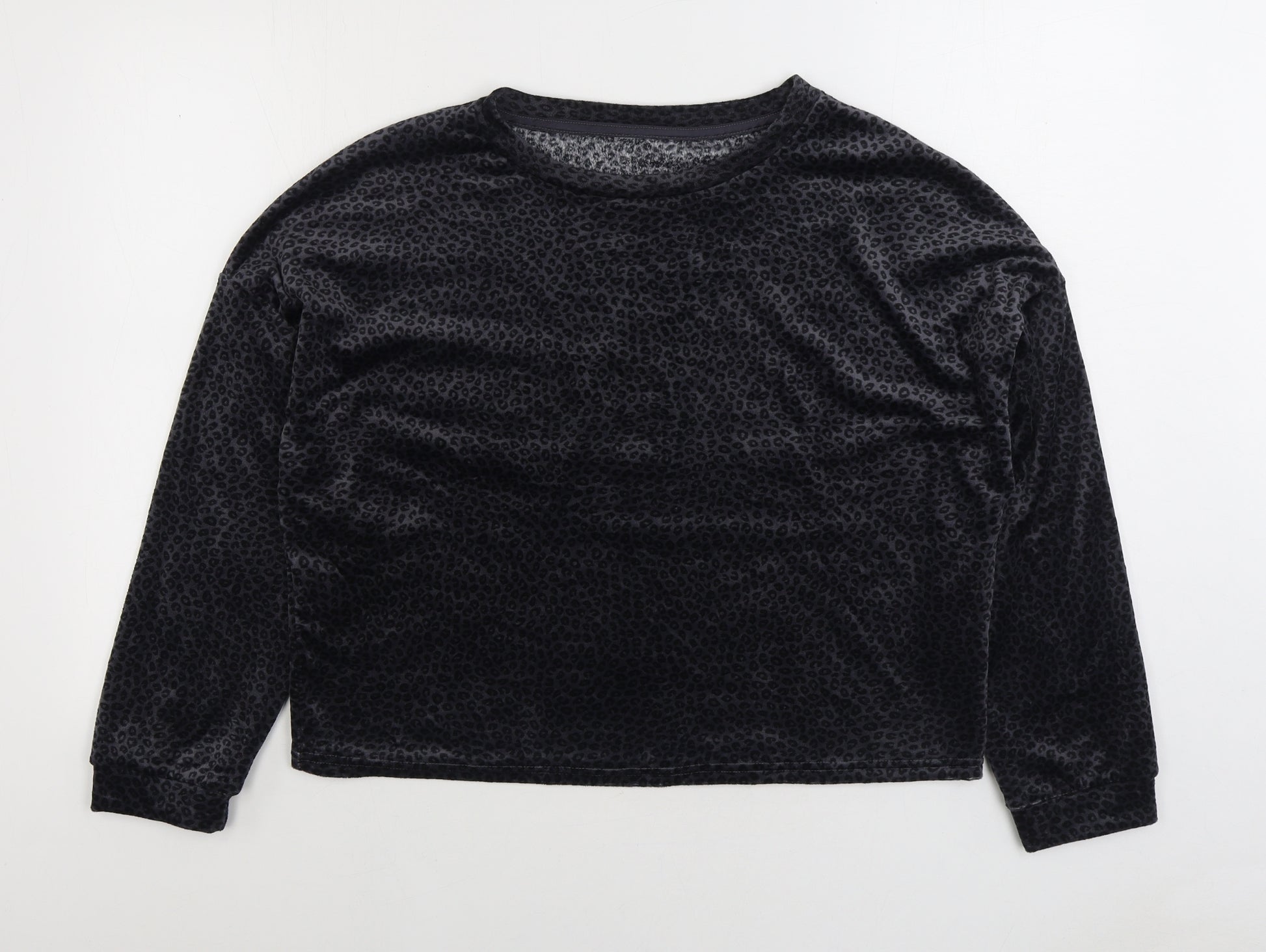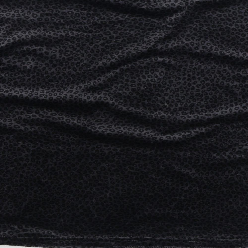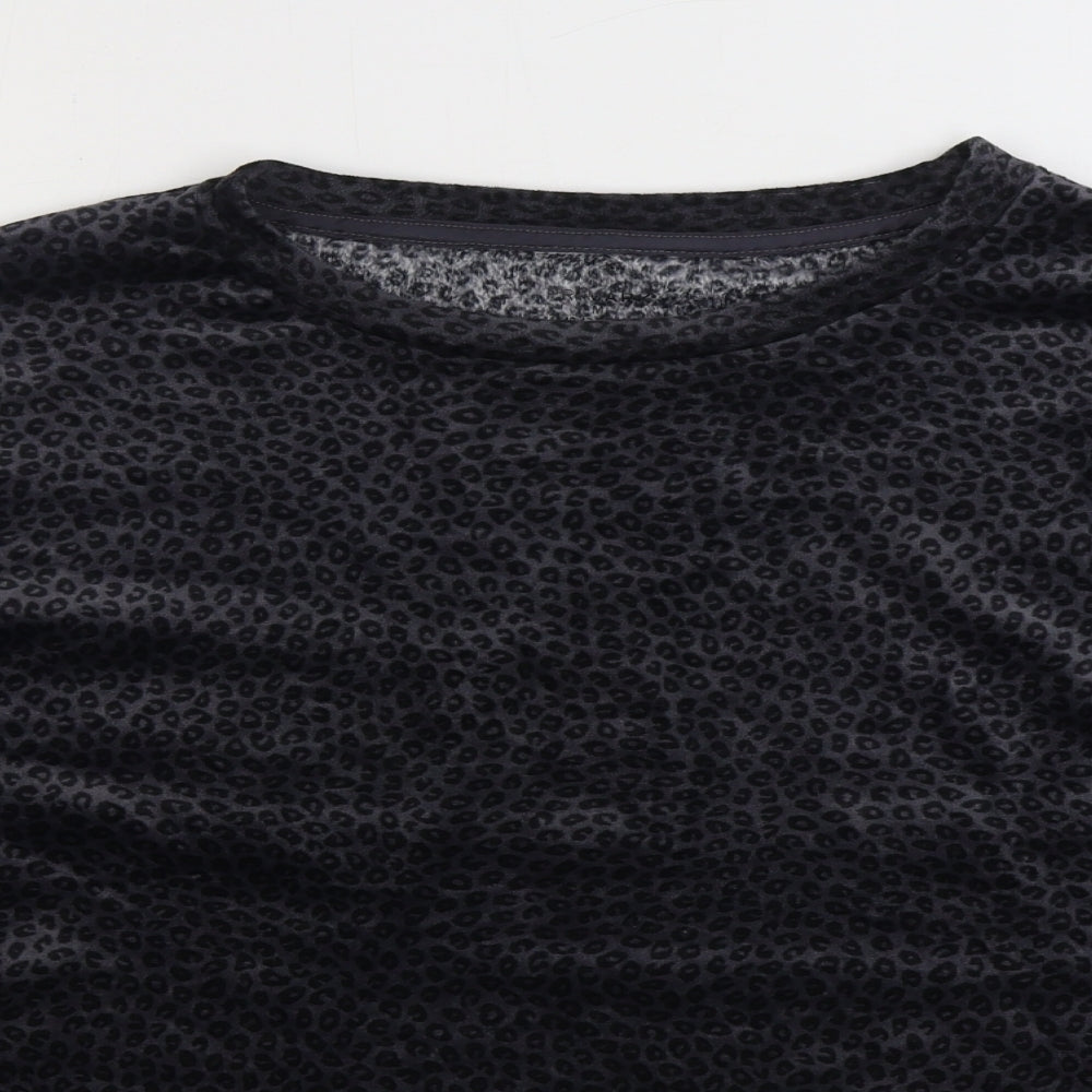 Womens Black Animal Print Polyester Top Pyjama Top Size M - Leopard Print