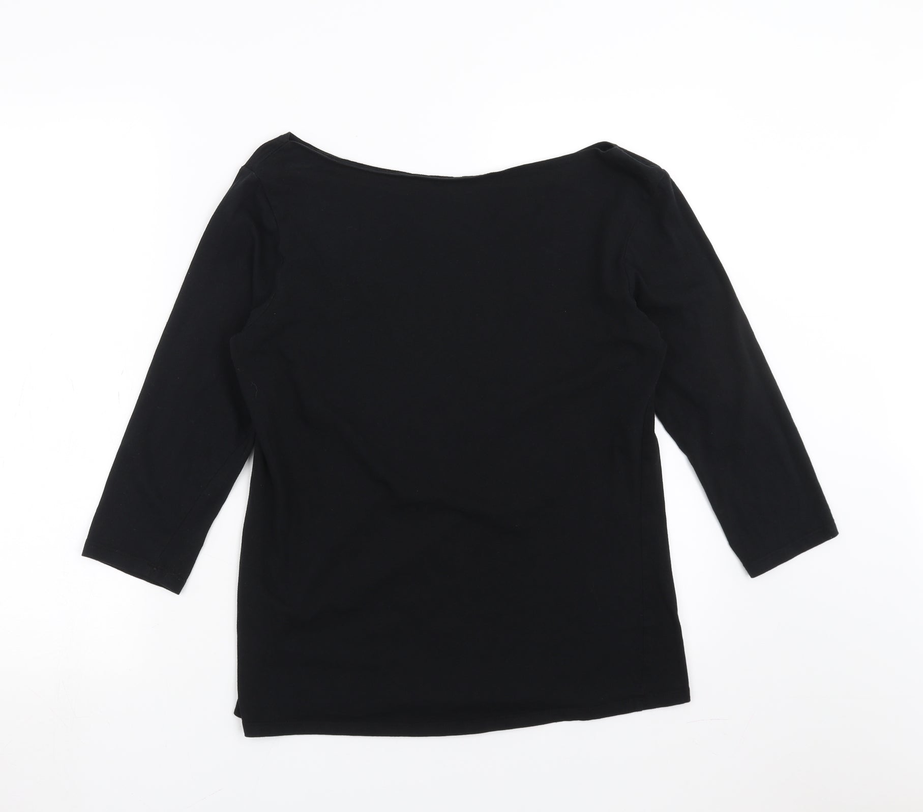 Womens Black Basic T-Shirt Size 16 - slash neck