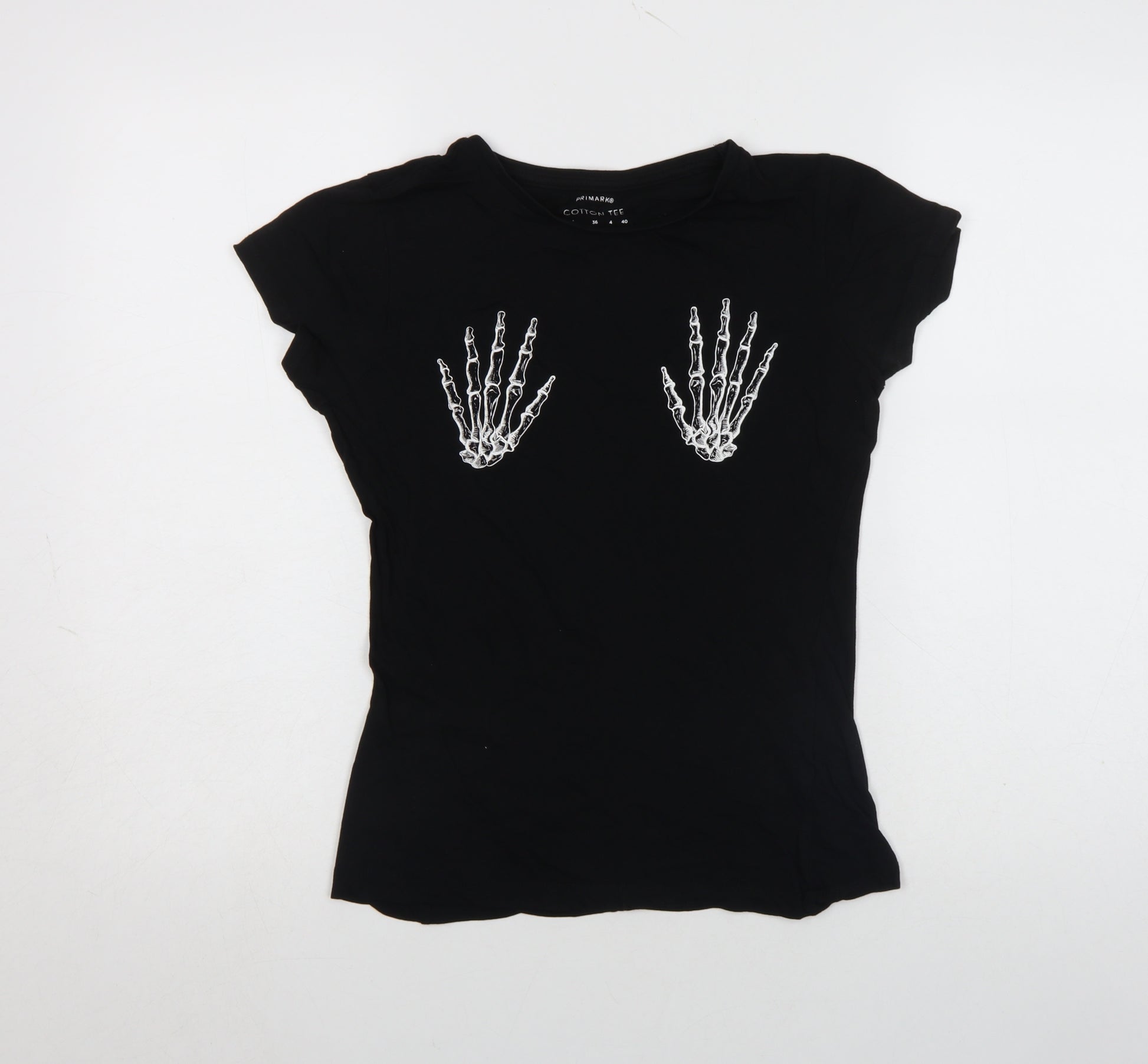 Womens Black Cotton Halloween Skeleton Hands T-Shirt Size 8