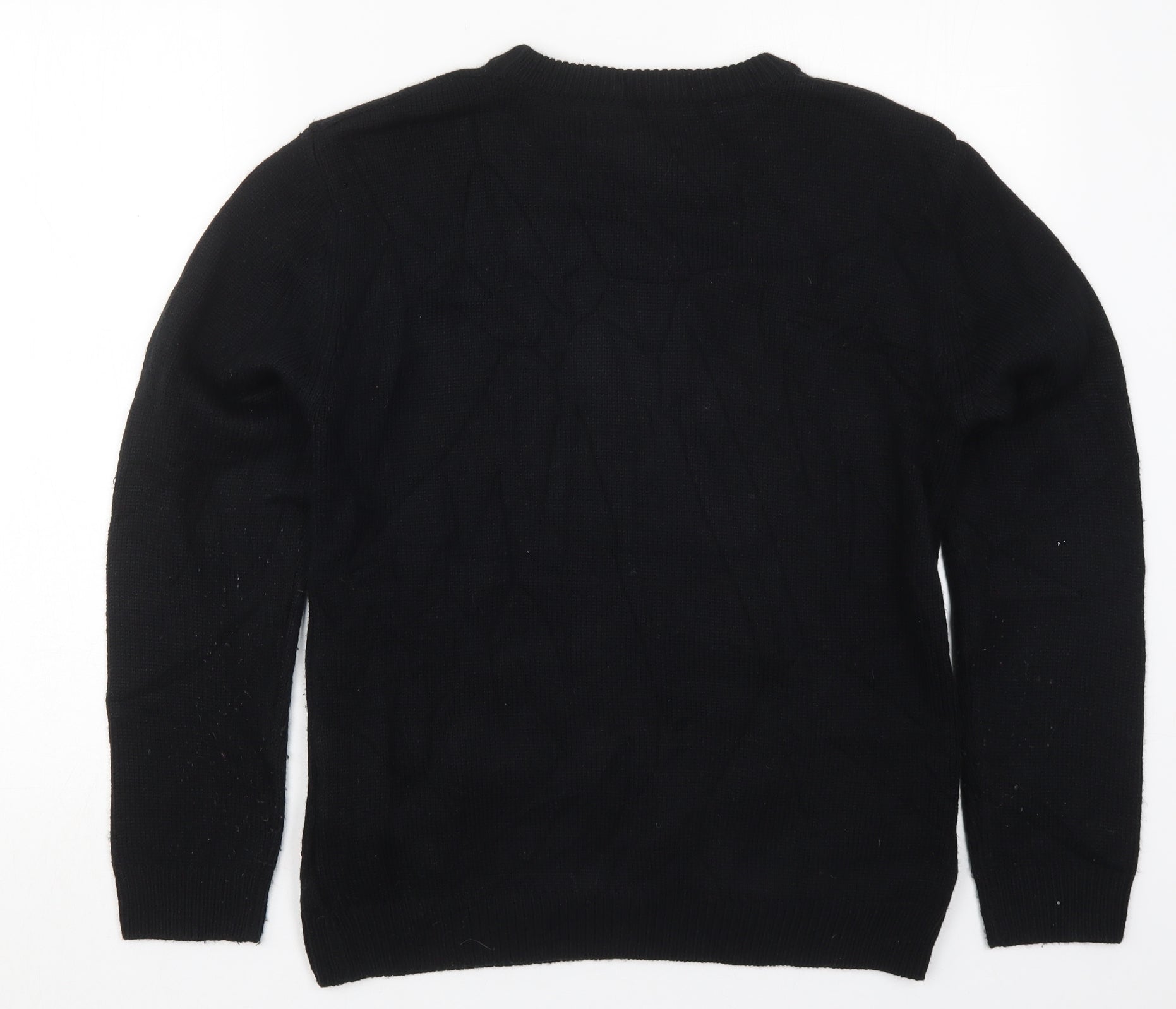 Womens Black Crew Neck Acrylic Pullover Jumper Size 10 - Christmas Tree