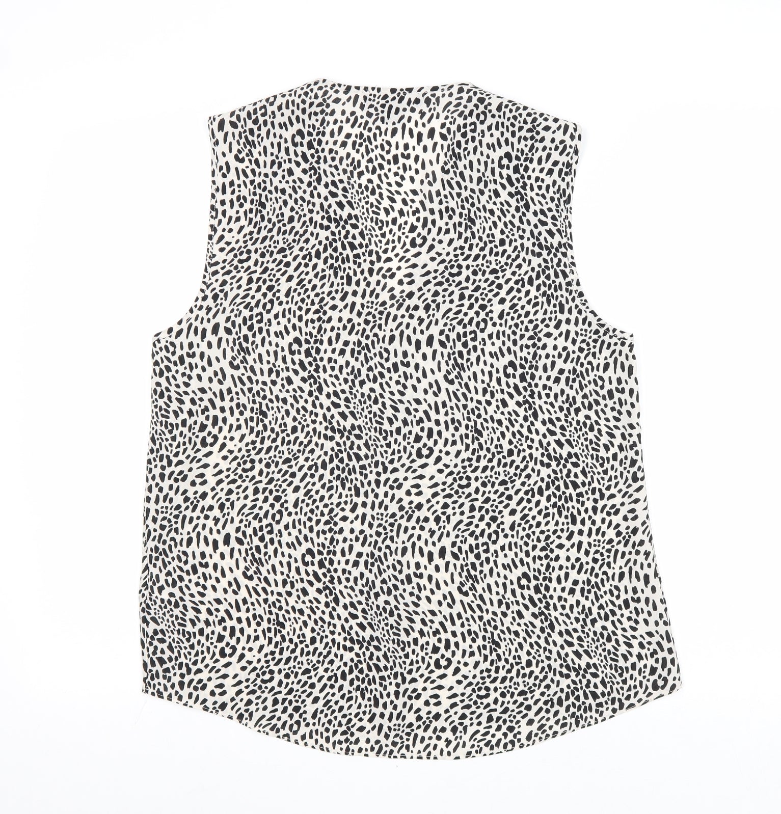 Womens Black Geometric Polyester Basic Tank Size 14 V-Neck