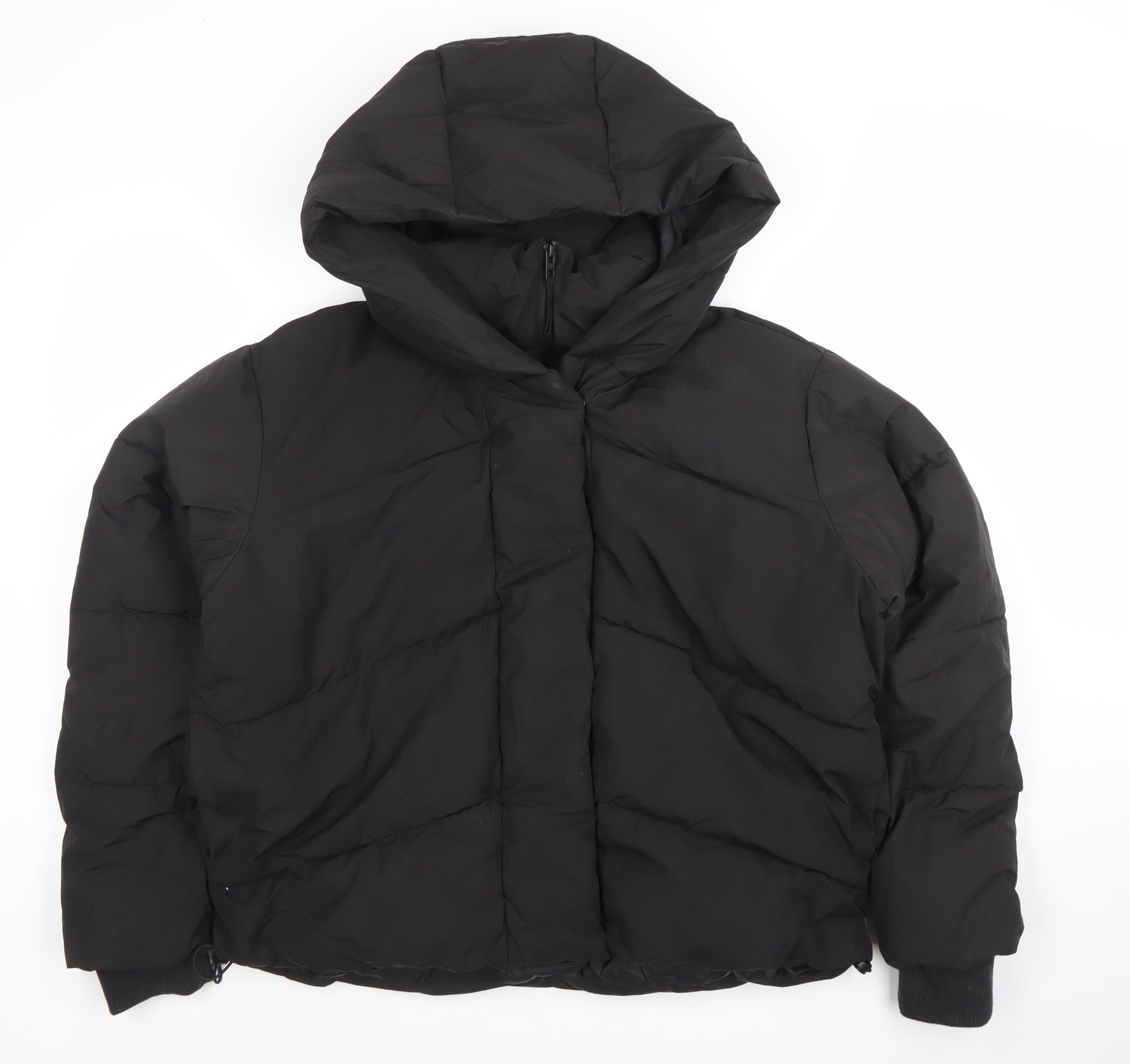 Stay warm and stylish this season with this Primark Women’s Black Hooded Puffer Jacket. Designed with comfort and practicality in mind, this jacket is the perfect blend of modern style and everyday versatility. Crafted from a durable polyester outer shell and lined with soft polyester material, it provides excellent insulation while maintaining a lightweight feel, ideal for layering in colder weather. The sleek black colour offers timeless appeal, making it easy to pair with virtually any outfit — from jeans and boots for casual days to leggings and trainers for off-duty comfort.Featuring a padded, quilted design, this jacket ensures warmth without bulk, while the hood adds extra protection against rain and wind. The front full zip fastening makes it quick and easy to slip on, and the adjustable hem drawstrings provide a custom fit for added coziness. Designed in a regular fit, it suits various body shapes comfortably, and its short length creates a flattering silhouette that complements both casual and outdoor wear.Perfect for winter walks, casual outings, or daily commutes, the Primark Cares Puffer Jacket combines sustainable materials and dependable style. Whether you're heading to work, travelling, or spending time outdoors, this jacket offers practicality without compromising on fashion. The clean, minimal look ensures it remains a staple wardrobe piece for seasons to come.With its excellent pre-loved condition and minimal signs of use, this jacket presents fantastic value. The Primark Cares initiative emphasizes affordable fashion made with responsible practices, adding eco-conscious reassurance to your wardrobe selection. Easy to care for and machine washable, this jacket offers long-lasting wear and convenience. A true winter essential, this puffer makes for a smart, budget-friendly choice for staying comfortable in cold, windy weather while maintaining effortless style.