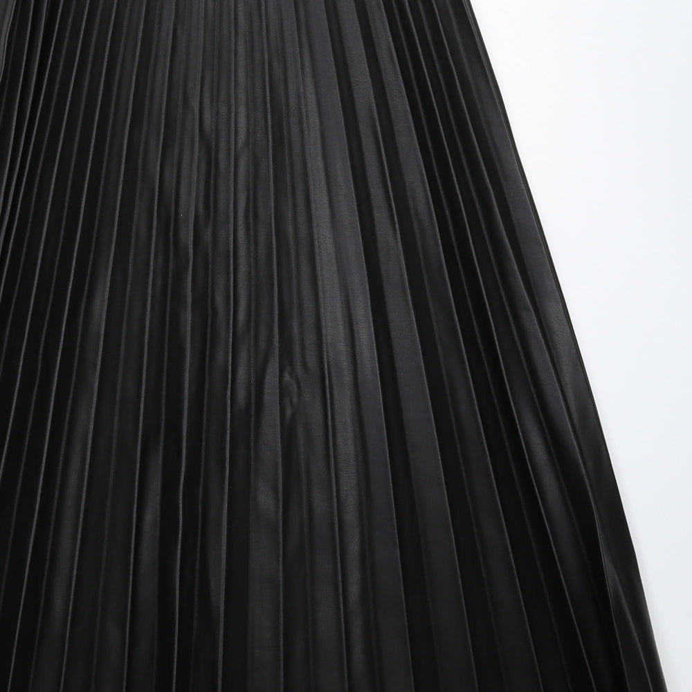 Womens Black Pleated Skirt Size 12 - Faux Leather