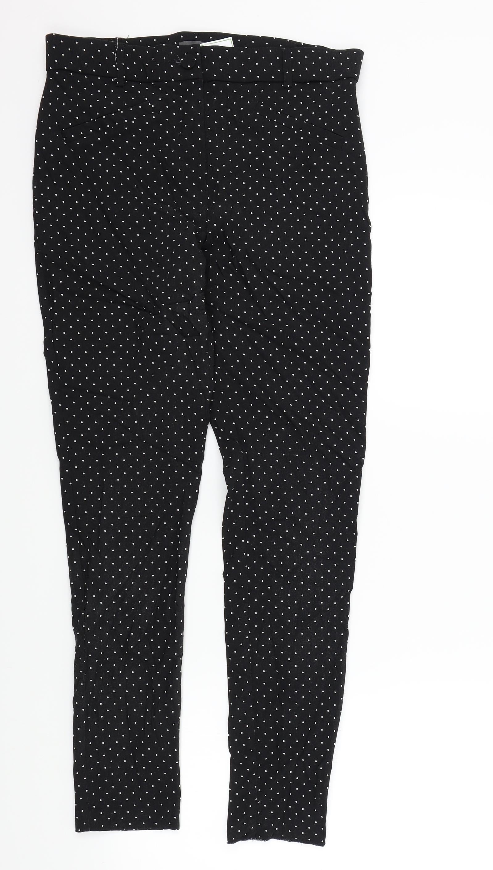 Womens Black Polka Dot Trousers Size 14 L28 in