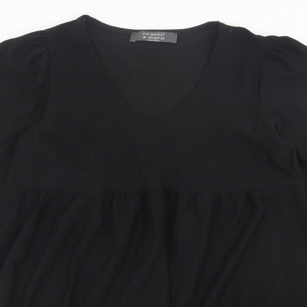 Womens Black Polyester A-Line Size M V-Neck Pullover