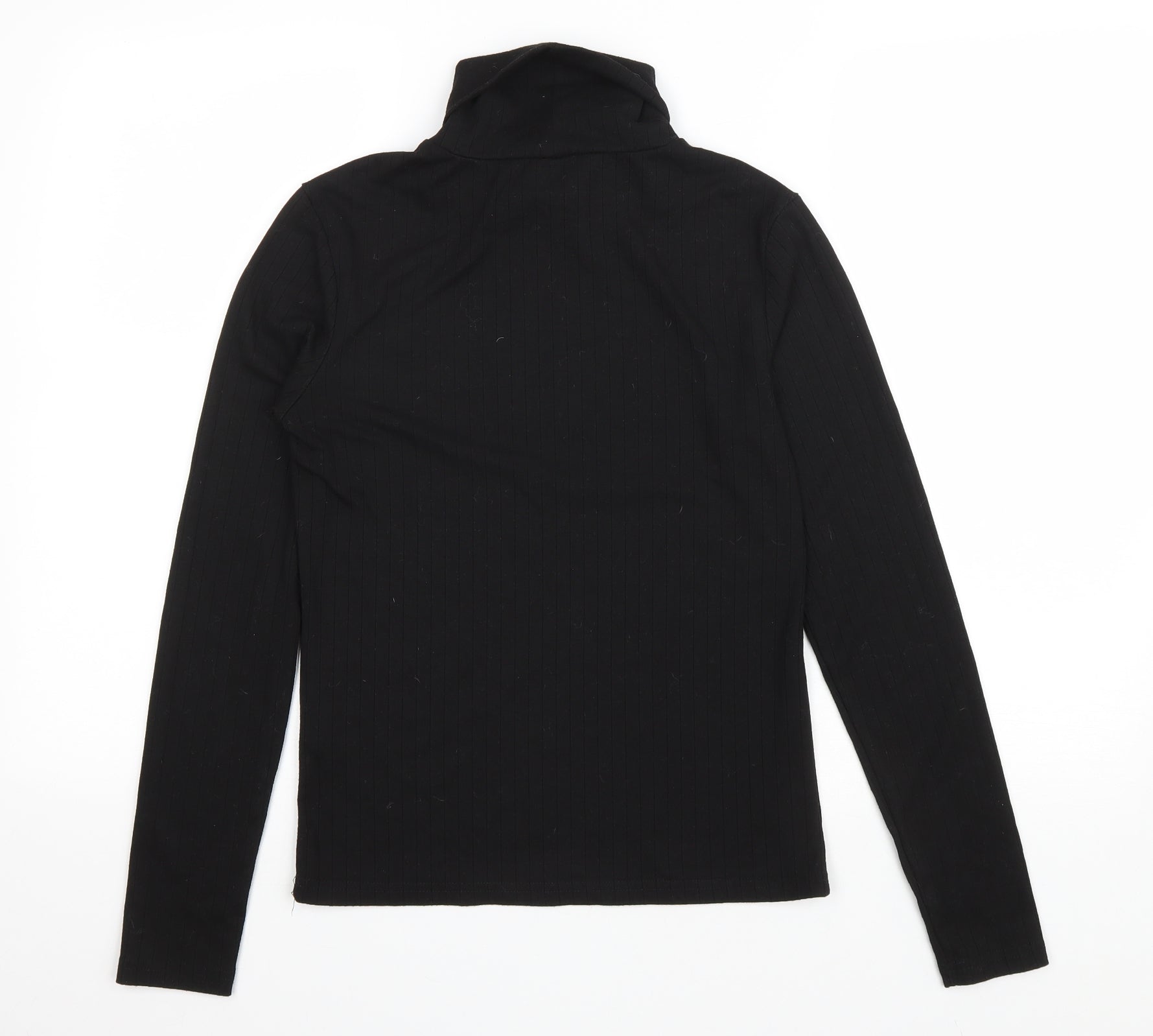 Womens Black Polyester Basic T-Shirt Size XS Roll Neck