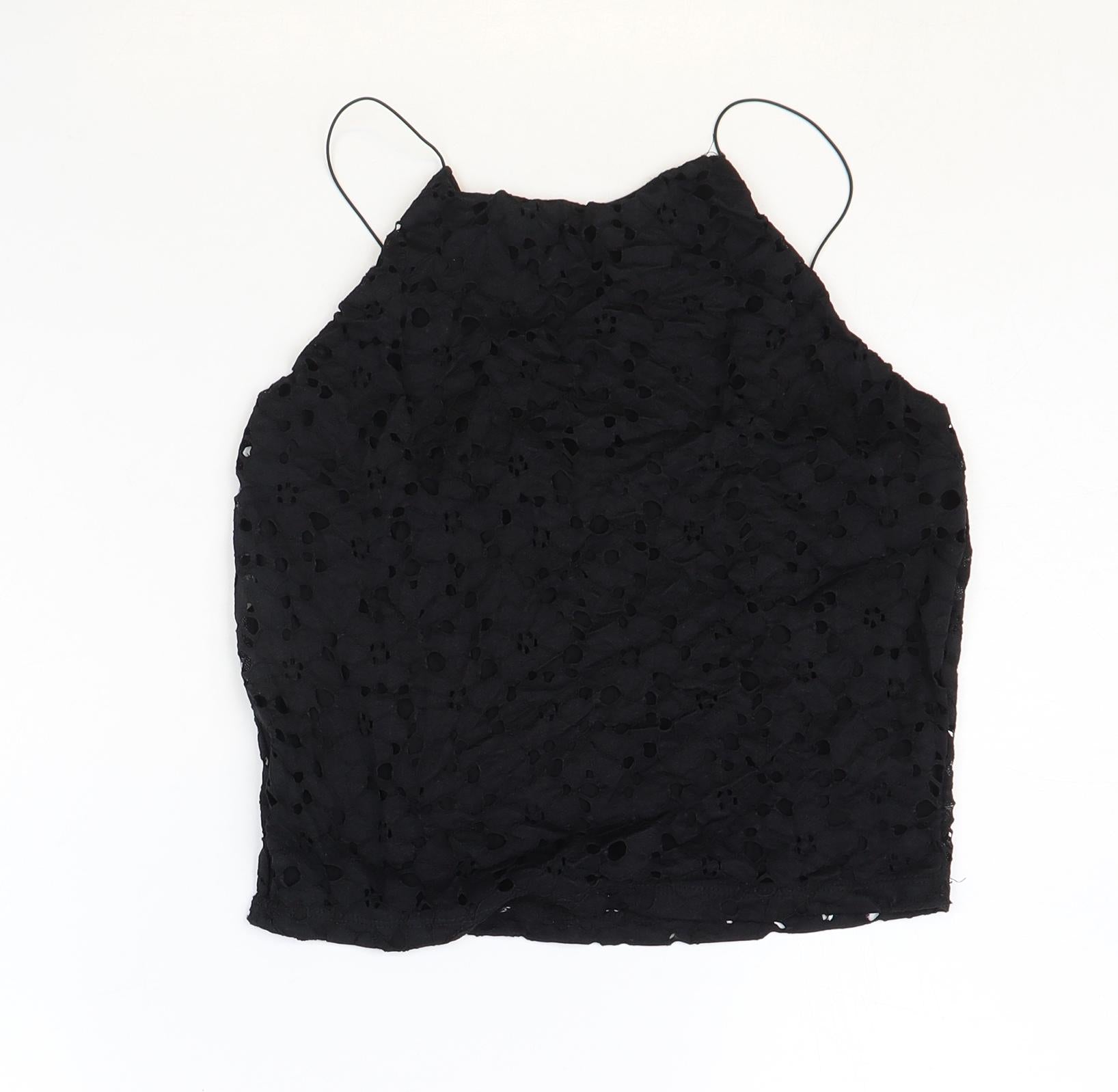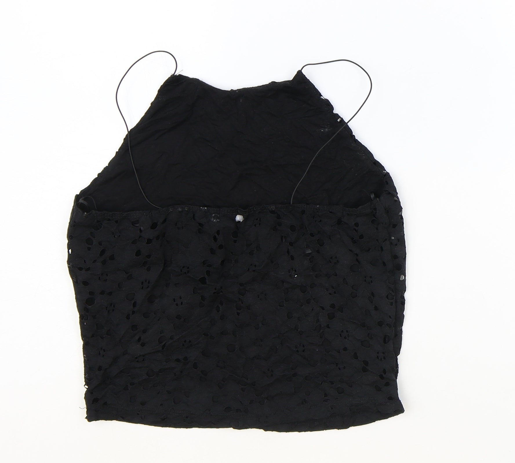 Womens Black Polyester Cropped Blouse Size 10 Square Neck