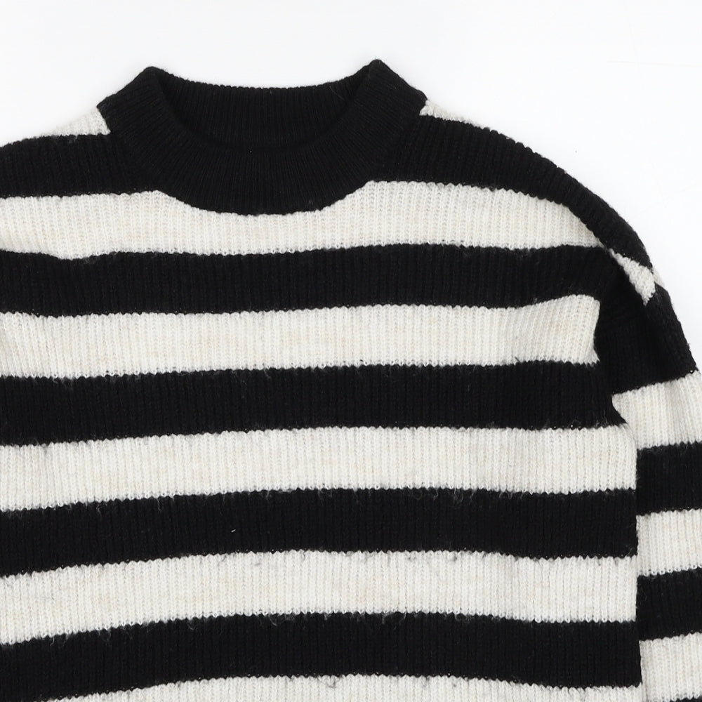 Womens Black Round Neck Striped Polyester Pullover Jumper Size 10