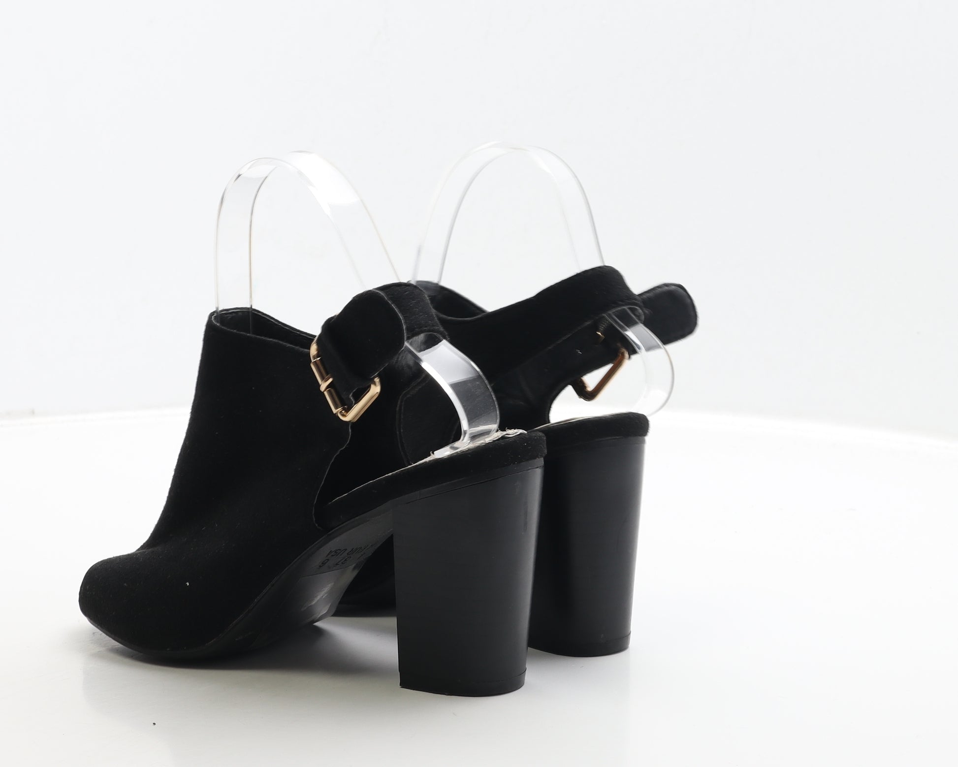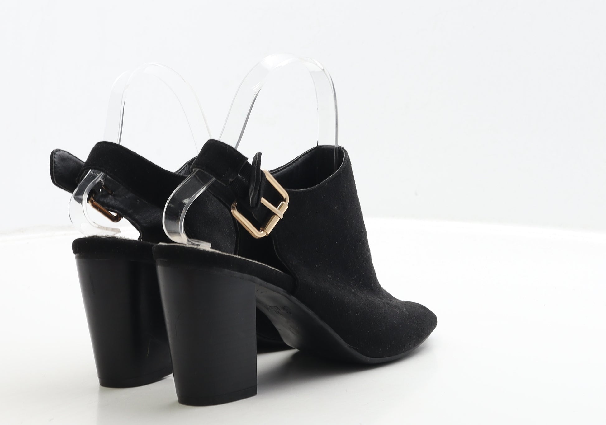 Womens Black Suede Slingback Heel UK 4 37 - Wide Fit