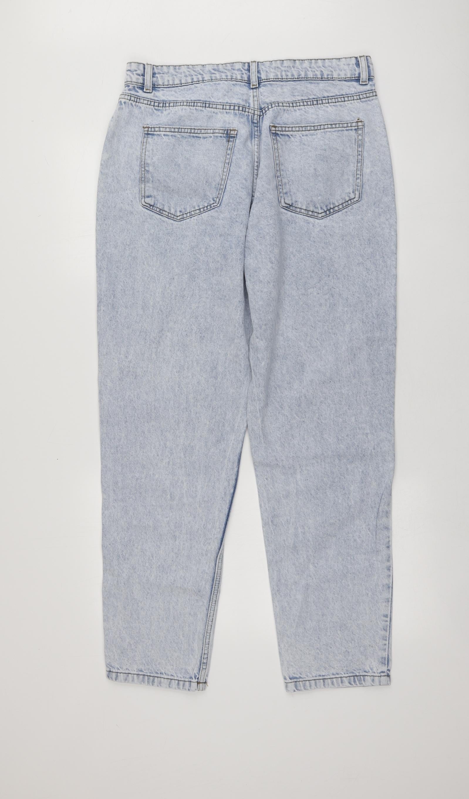 Womens Blue Cotton Boyfriend Jeans Size 14 L29.5 in Regular