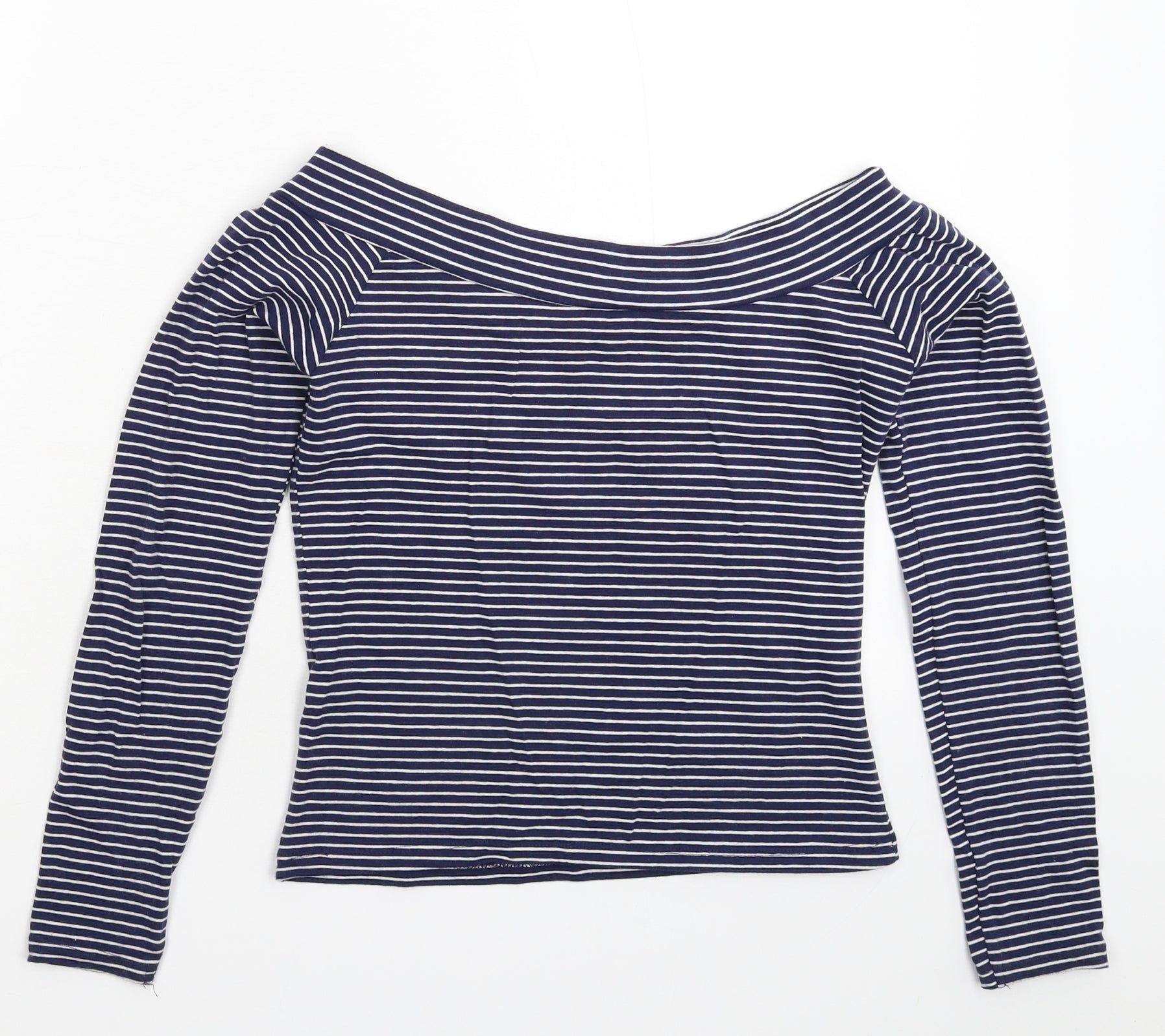 Stradivarius Women’s Blue Striped Off Shoulder Cropped Top Size 8