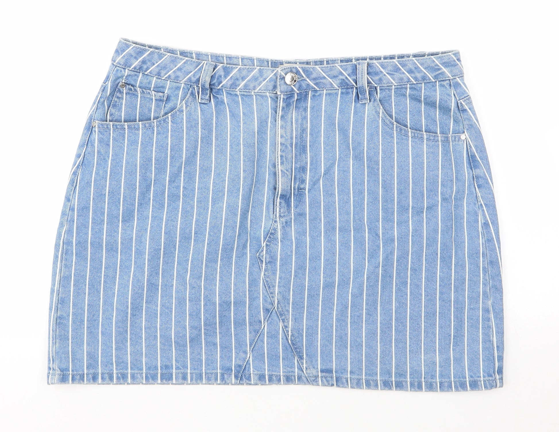 Womens Blue Striped Cotton A-Line Skirt Size 16