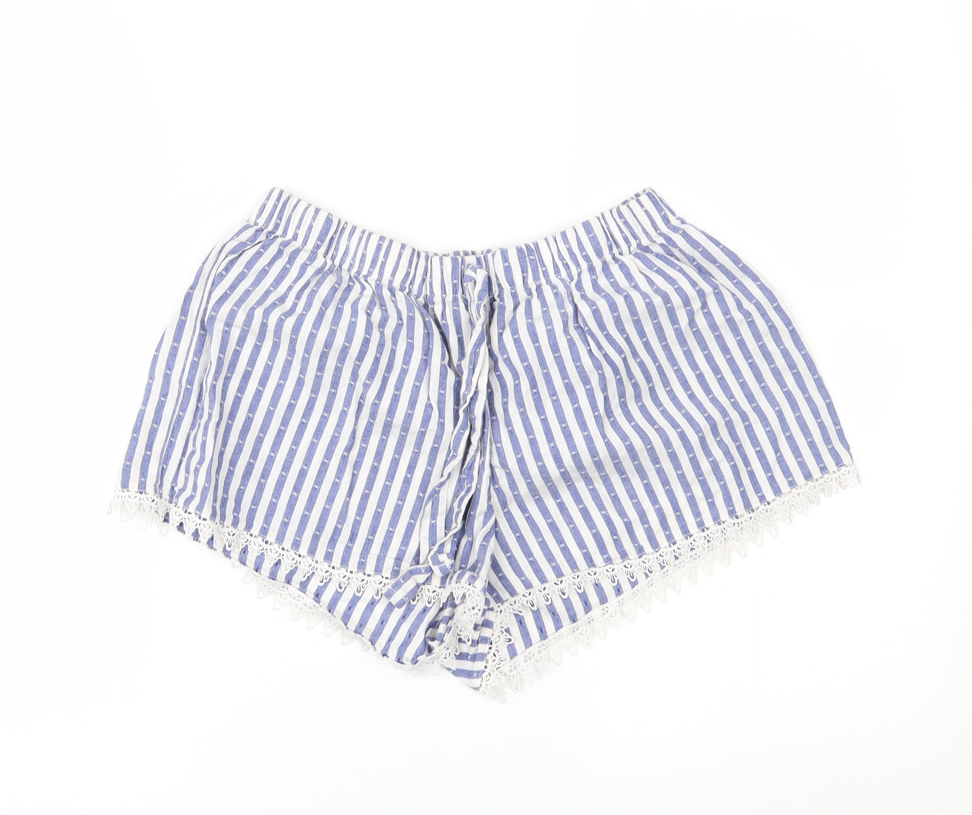 Marks and Spencer Women Blue Striped Cotton Pyjama Pants M