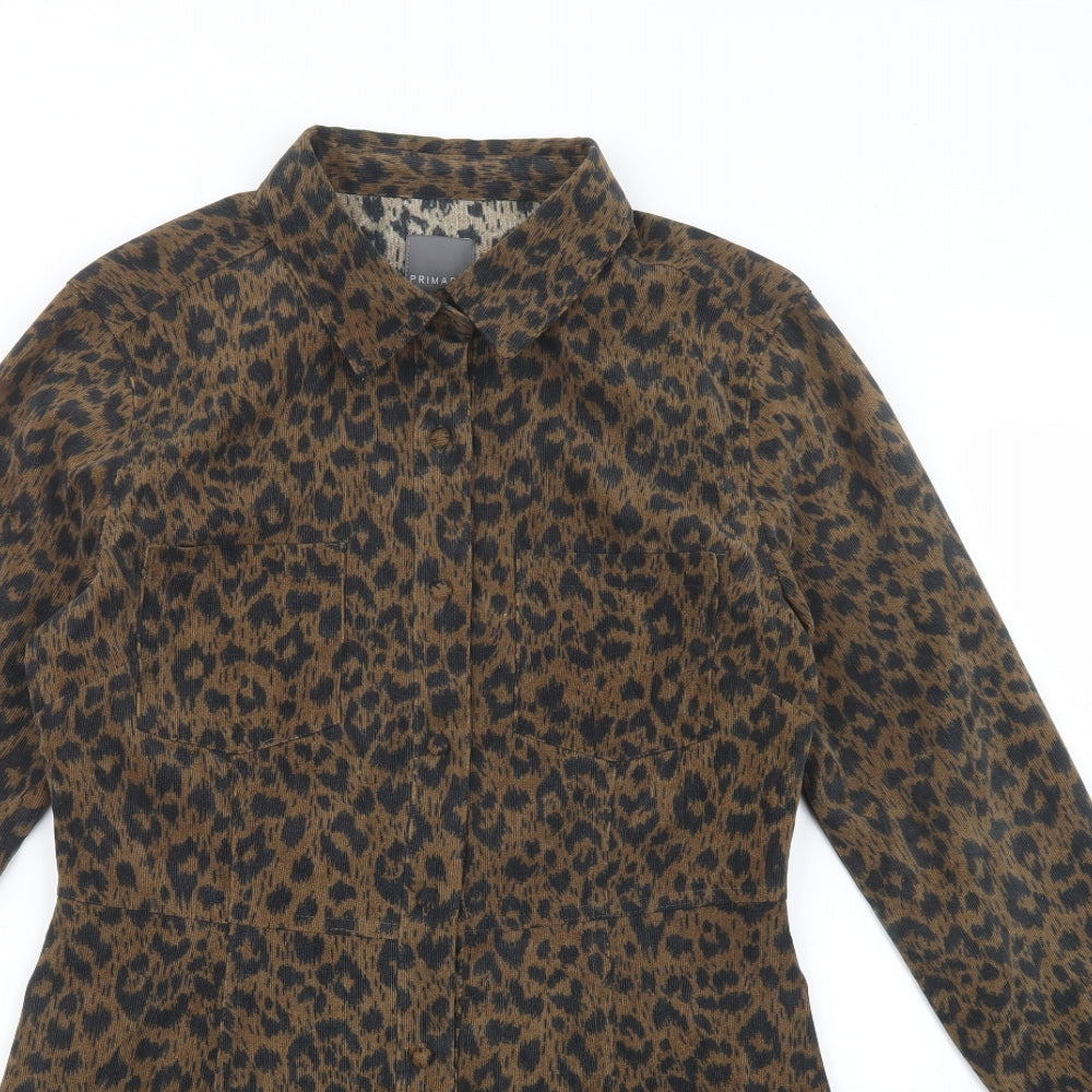 Womens Brown Animal Print Polyester Shirt Dress Size 12 Collared Button
