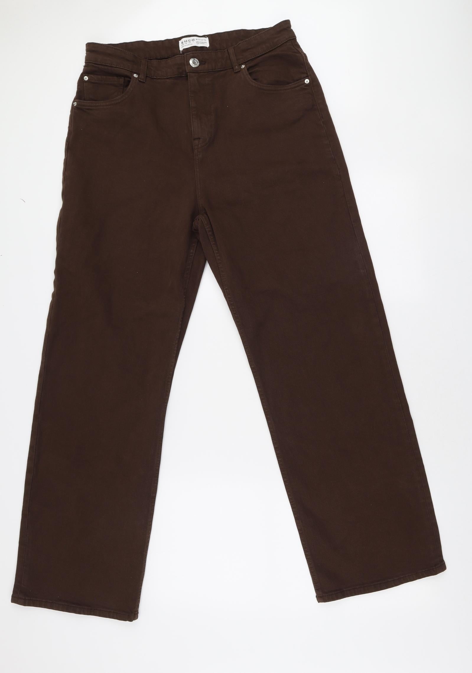 Womens Brown Cotton Wide-Leg Jeans Size 16 L30 in Regular