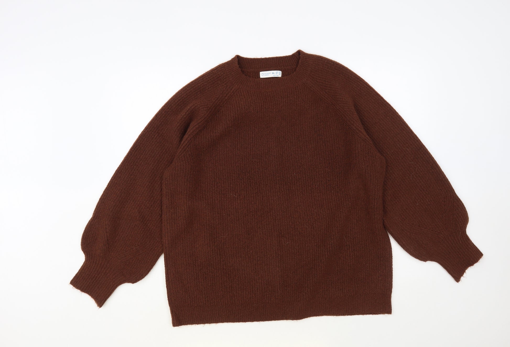 Womens Brown Crew Neck Polyester Pullover Jumper Size 18