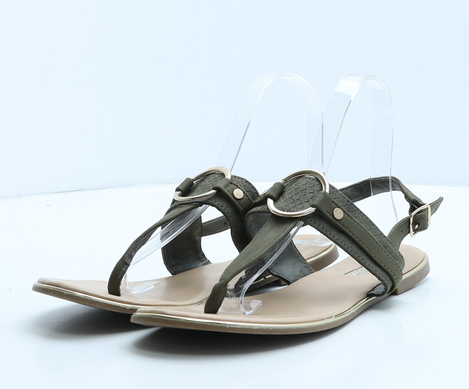 Womens Green Animal Print Leather Thong Sandal UK 6 39