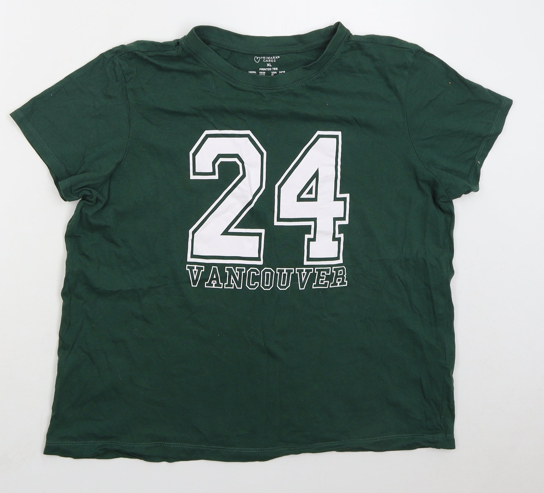 Womens Green Cotton Basic T-Shirt Size 18 Crew Neck - 24 Vancouver