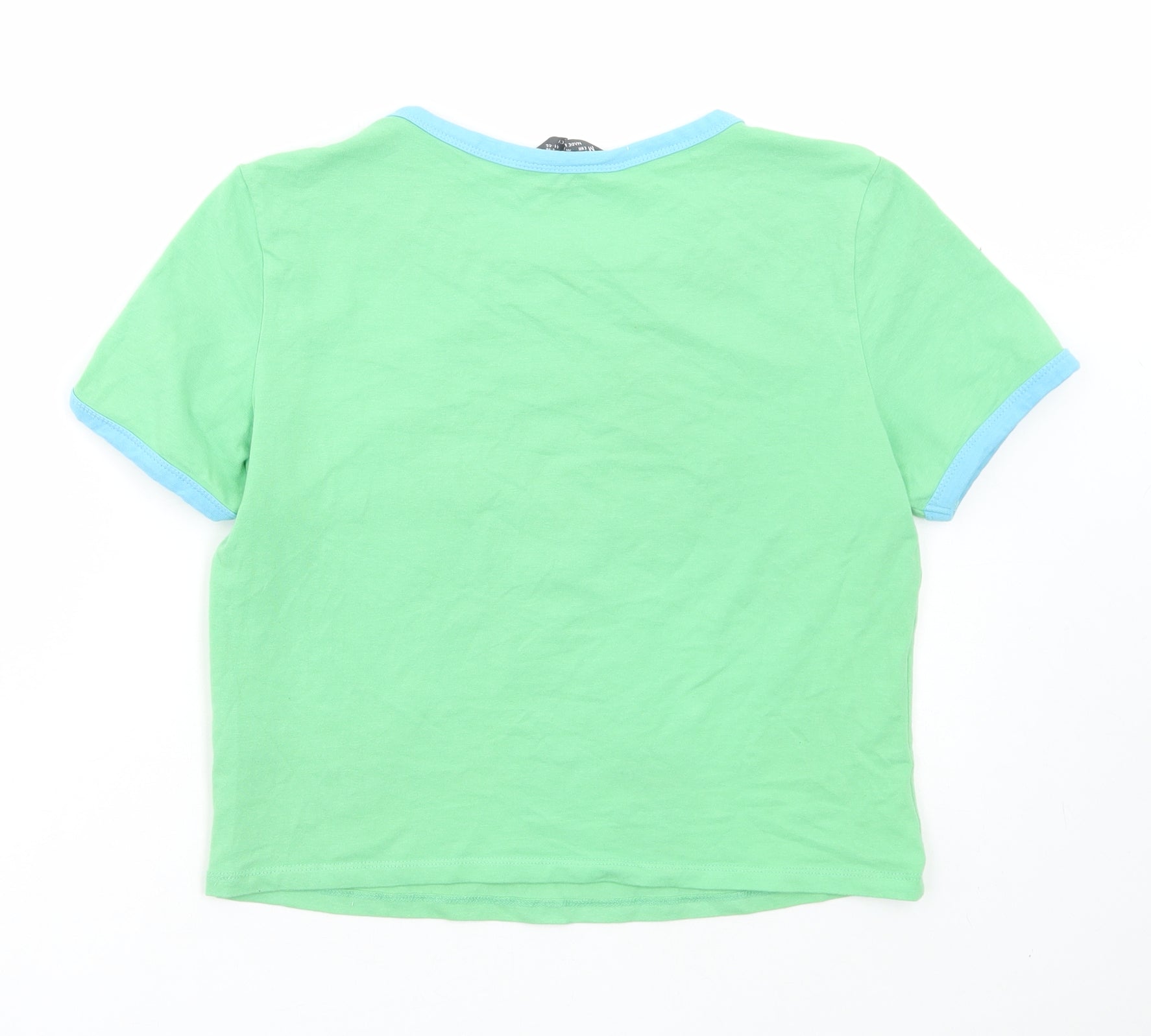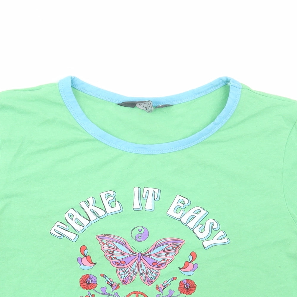 Womens Green Cotton Cropped T-Shirt Size M Round Neck - Take it easy