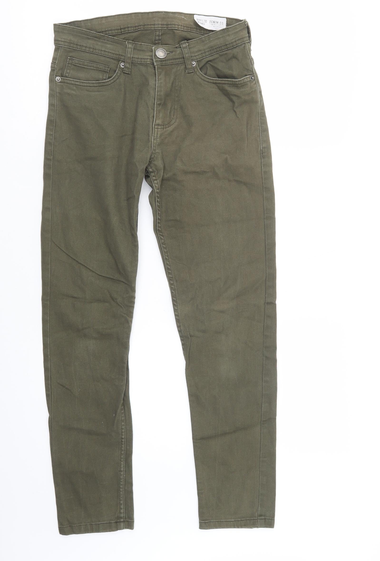 Womens Green Cotton Skinny Jeans Size 28 L30 in Regular Button