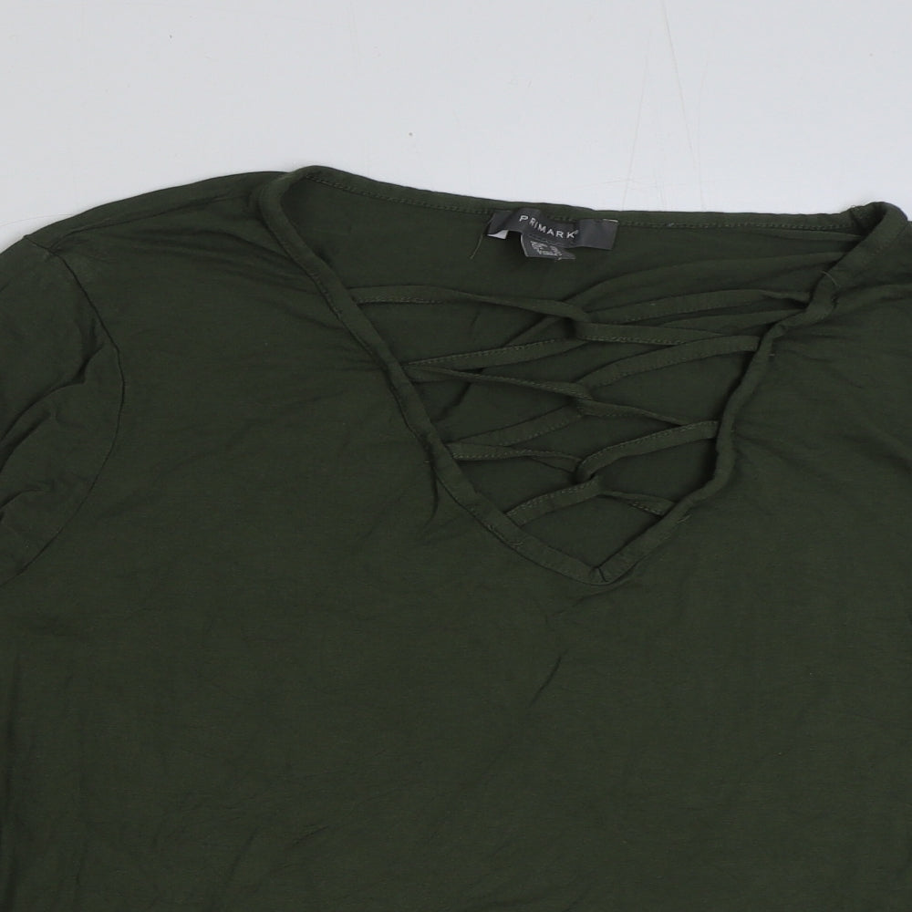 Womens Green Polyester Basic T-Shirt Size 20 V-Neck