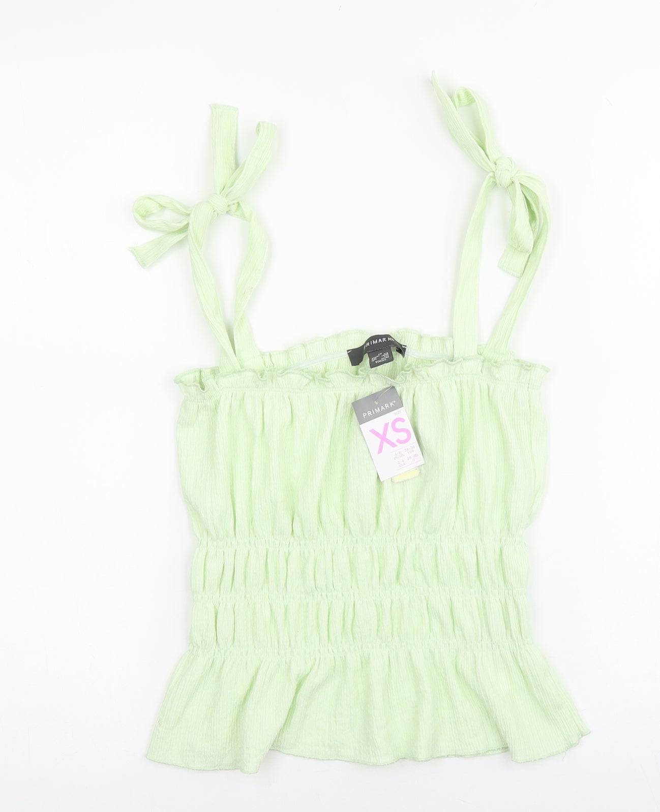 Womens Green Polyester Basic Tank Size XS Square Neck - Shoulder Tie Detail Peplum
