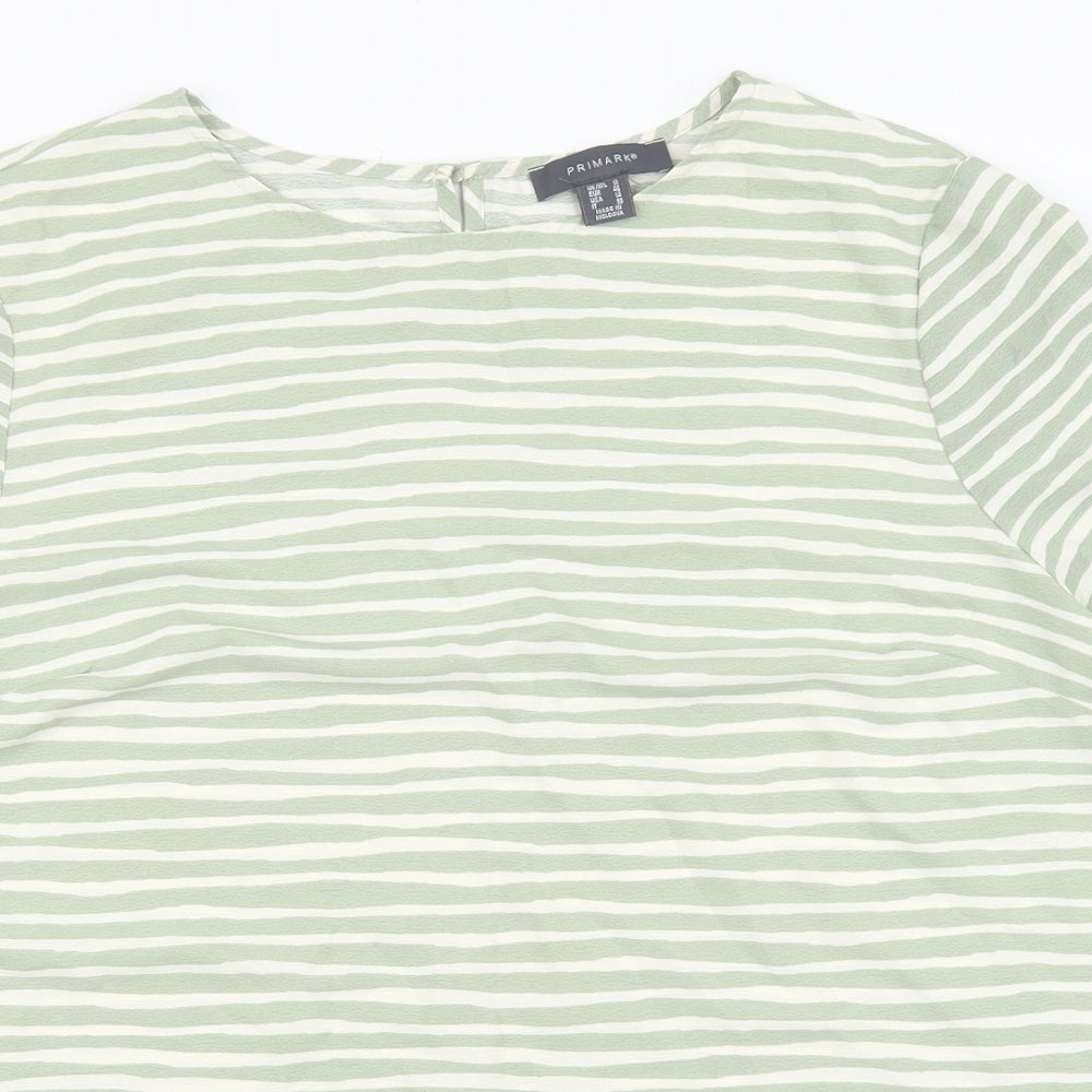 Womens Green Striped Polyester Basic T-Shirt Size 18 Boat Neck