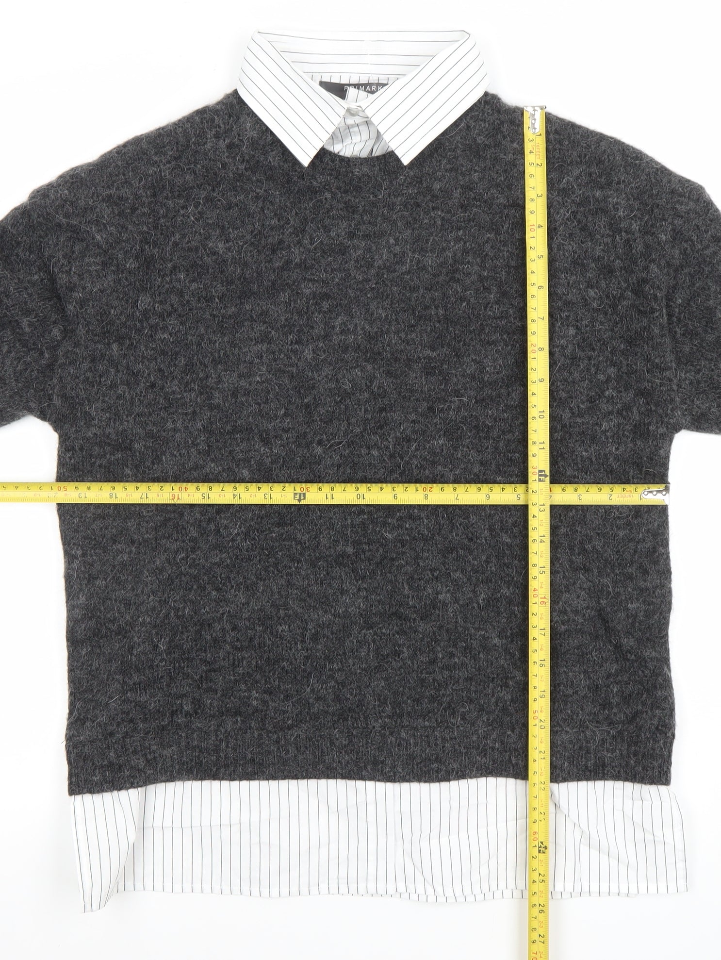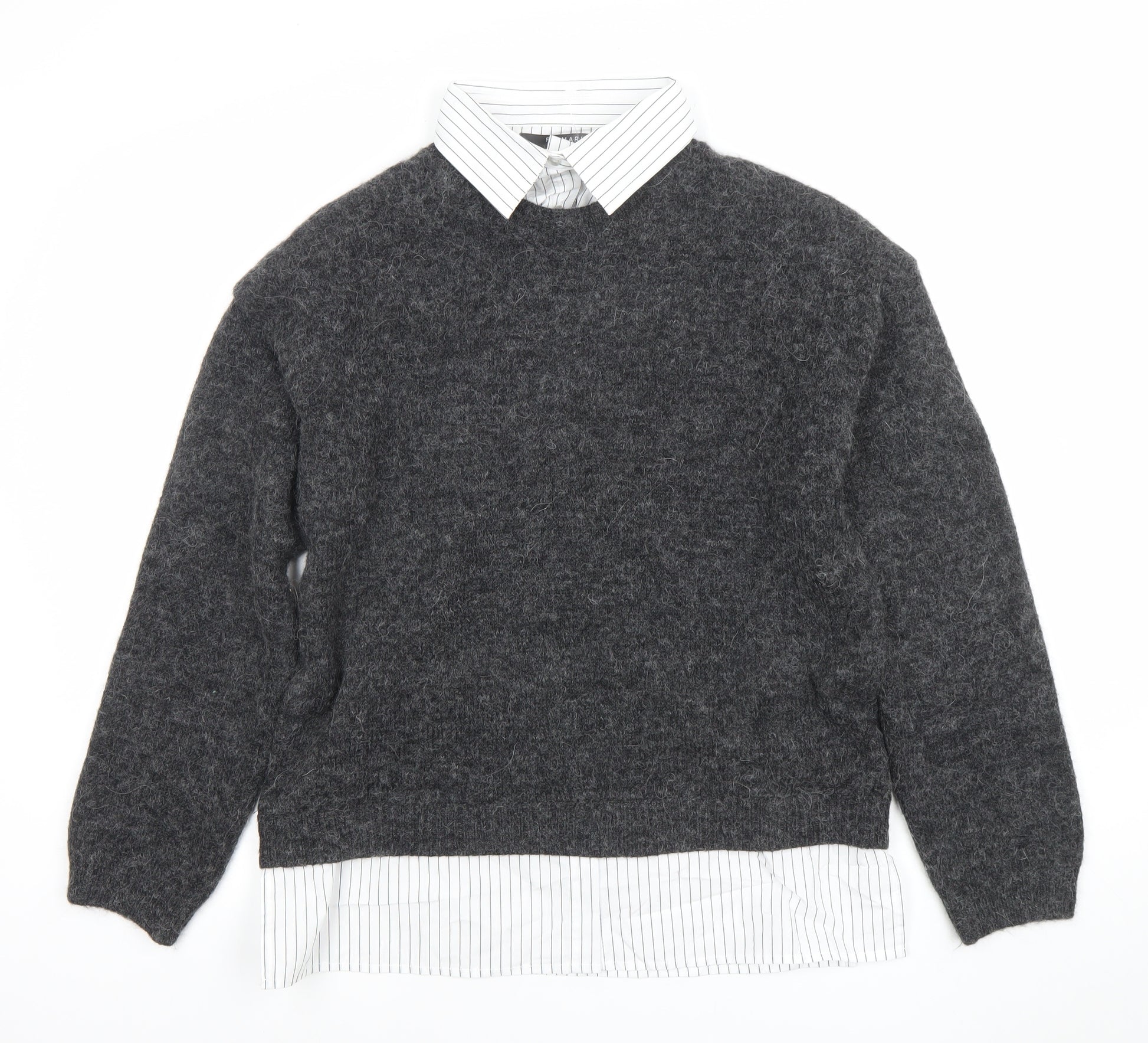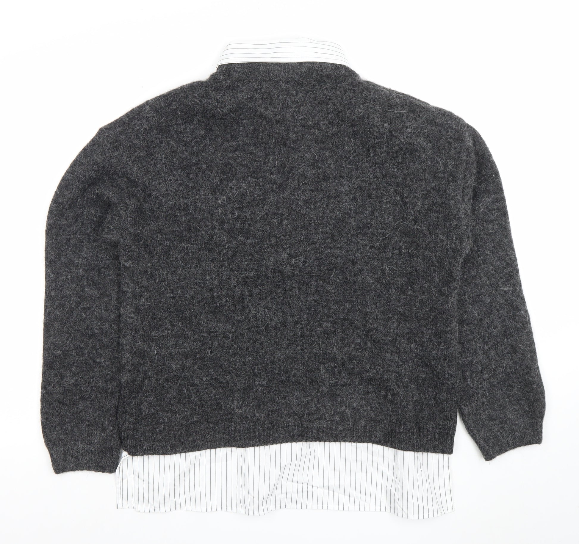 Womens Grey Collared Knit Jumper Shirt M Classic Workwear