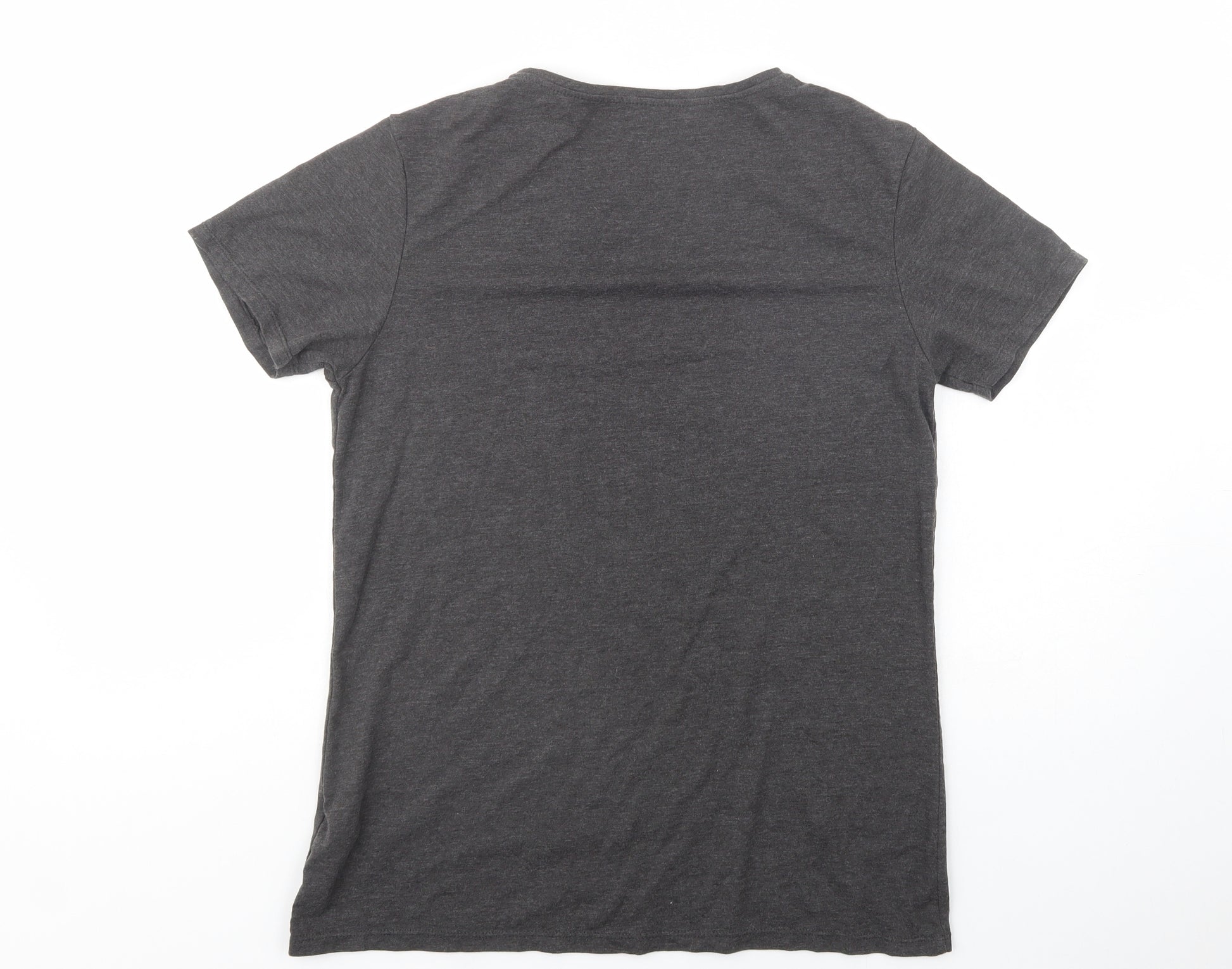 Womens Grey Cotton Basic T-Shirt Size 14 Crew Neck