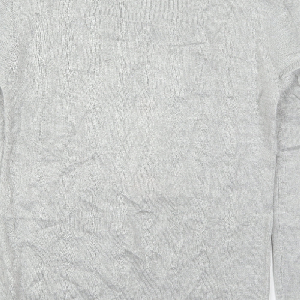 Womens Grey Crew Neck Acrylic Pullover Jumper Size 6 - Christmas Robin