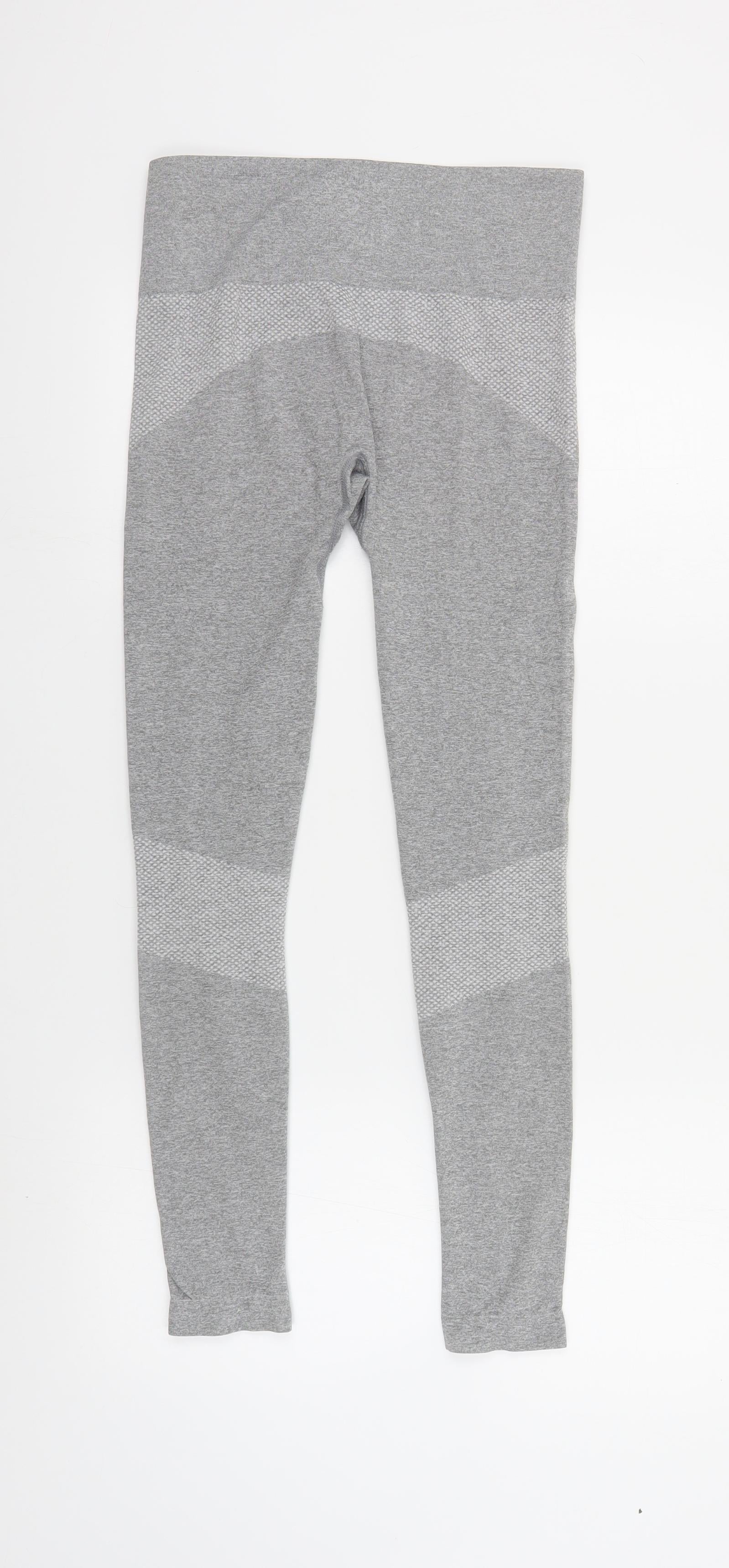 Womens Grey Geometric Polyester Compression Leggings Size 10 L27 in Regular