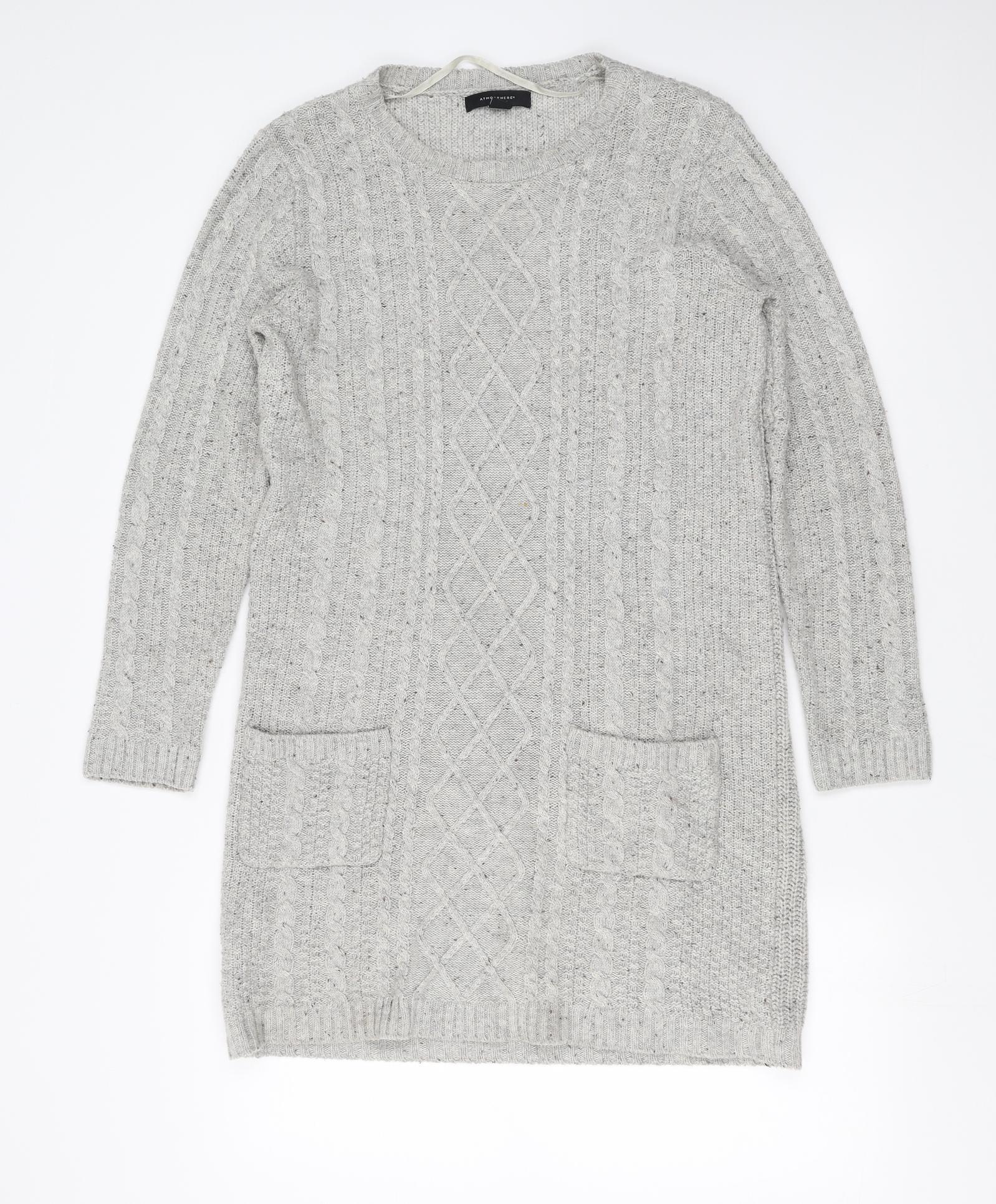 Womens Grey Knit Jumper Dress Size 12 - cable knit
