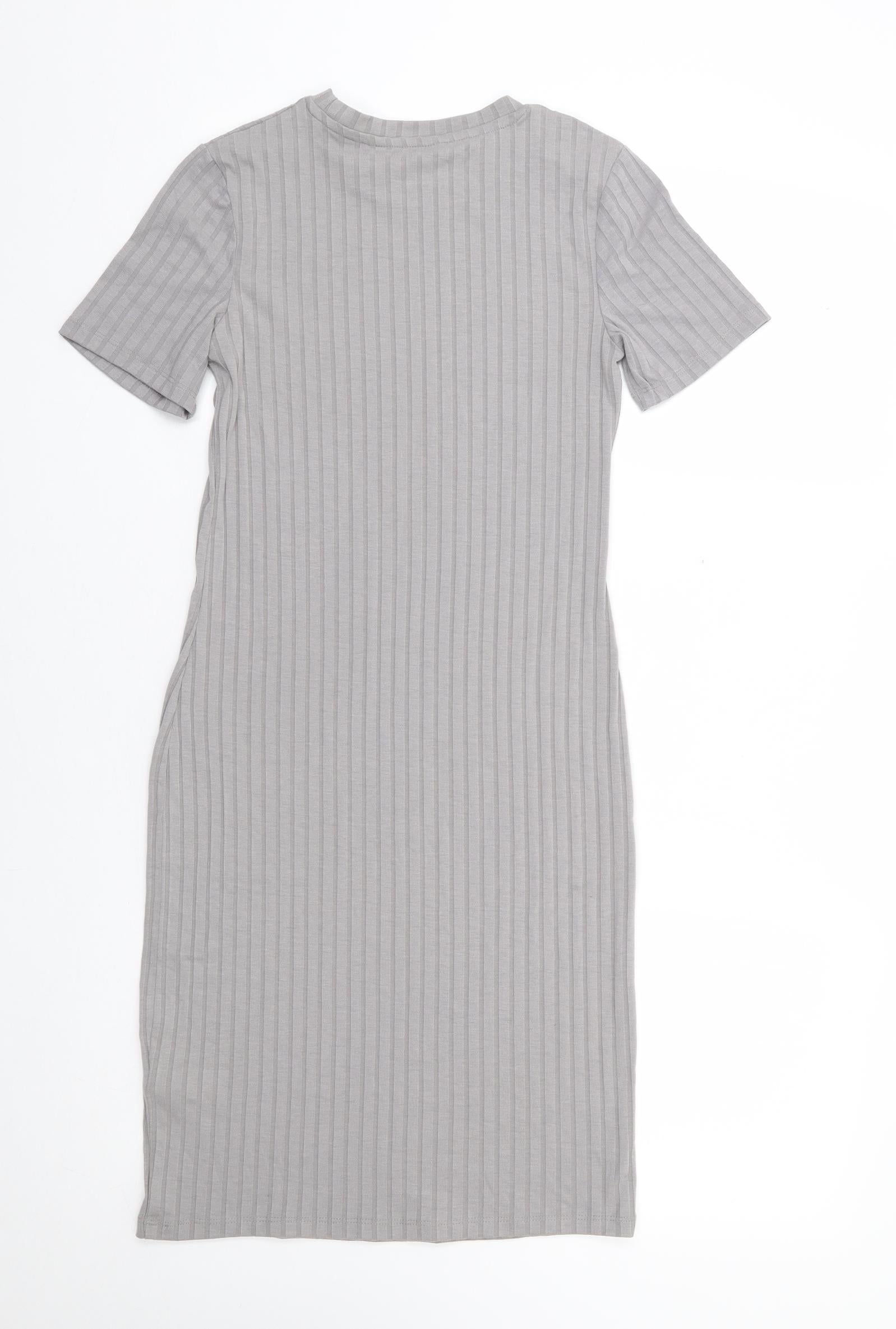 Womens Grey Polyester T-Shirt Dress Size 8 Round Neck Pullover