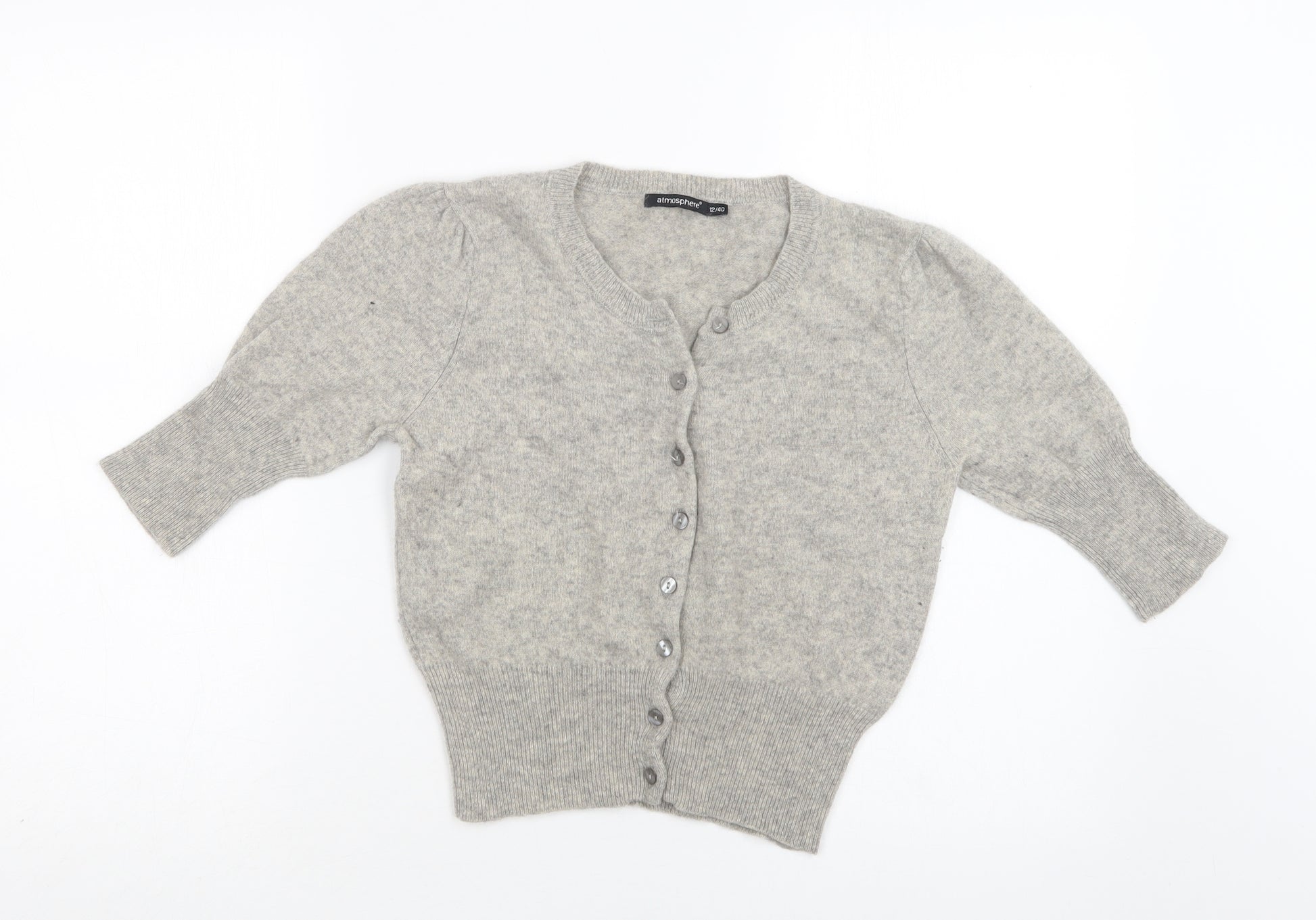 Womens Grey Round Neck Cashmere Cardigan Jumper Size 12