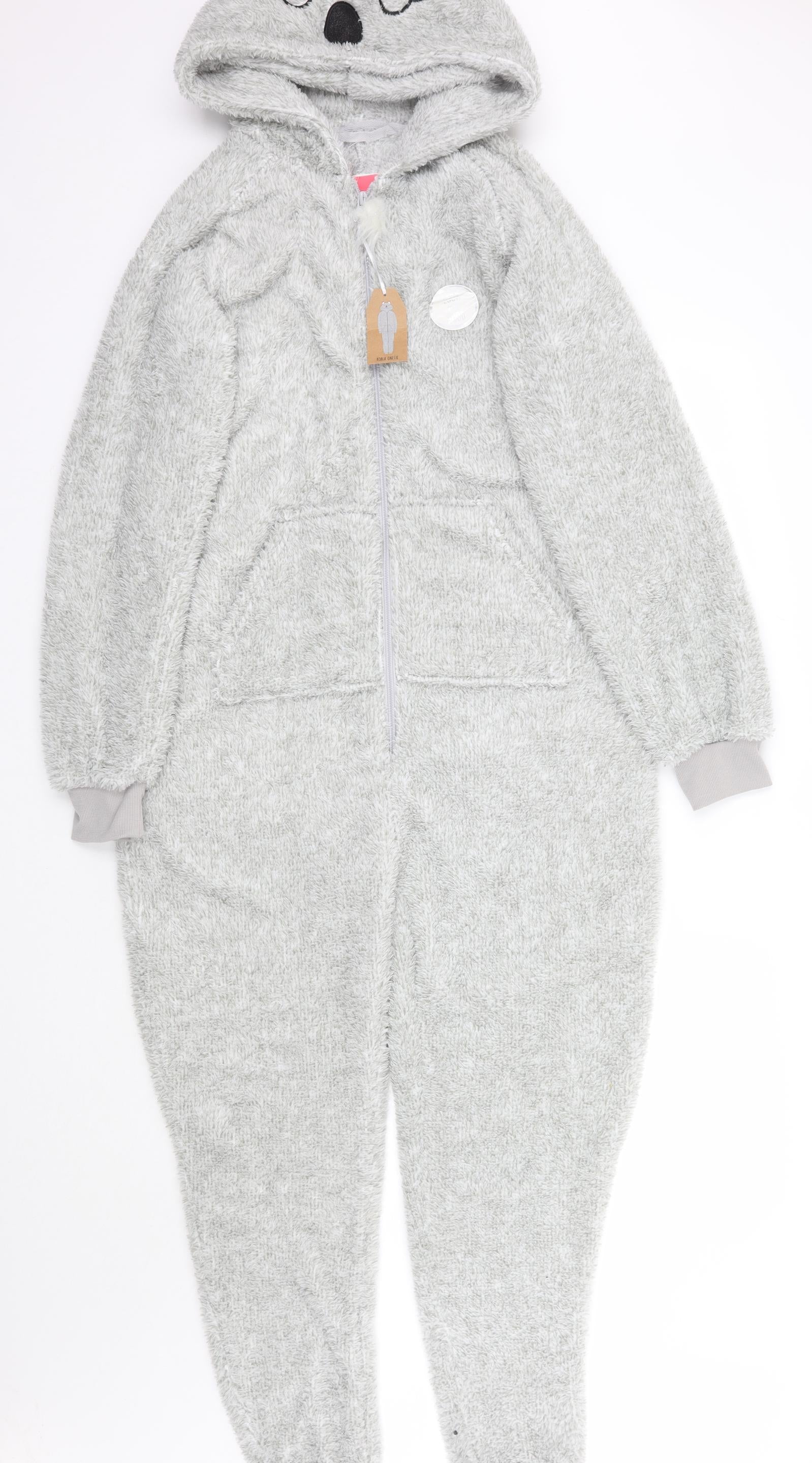 Autumn Faith Women’s Grey Animal Print Fleece Hooded Onesie Size S