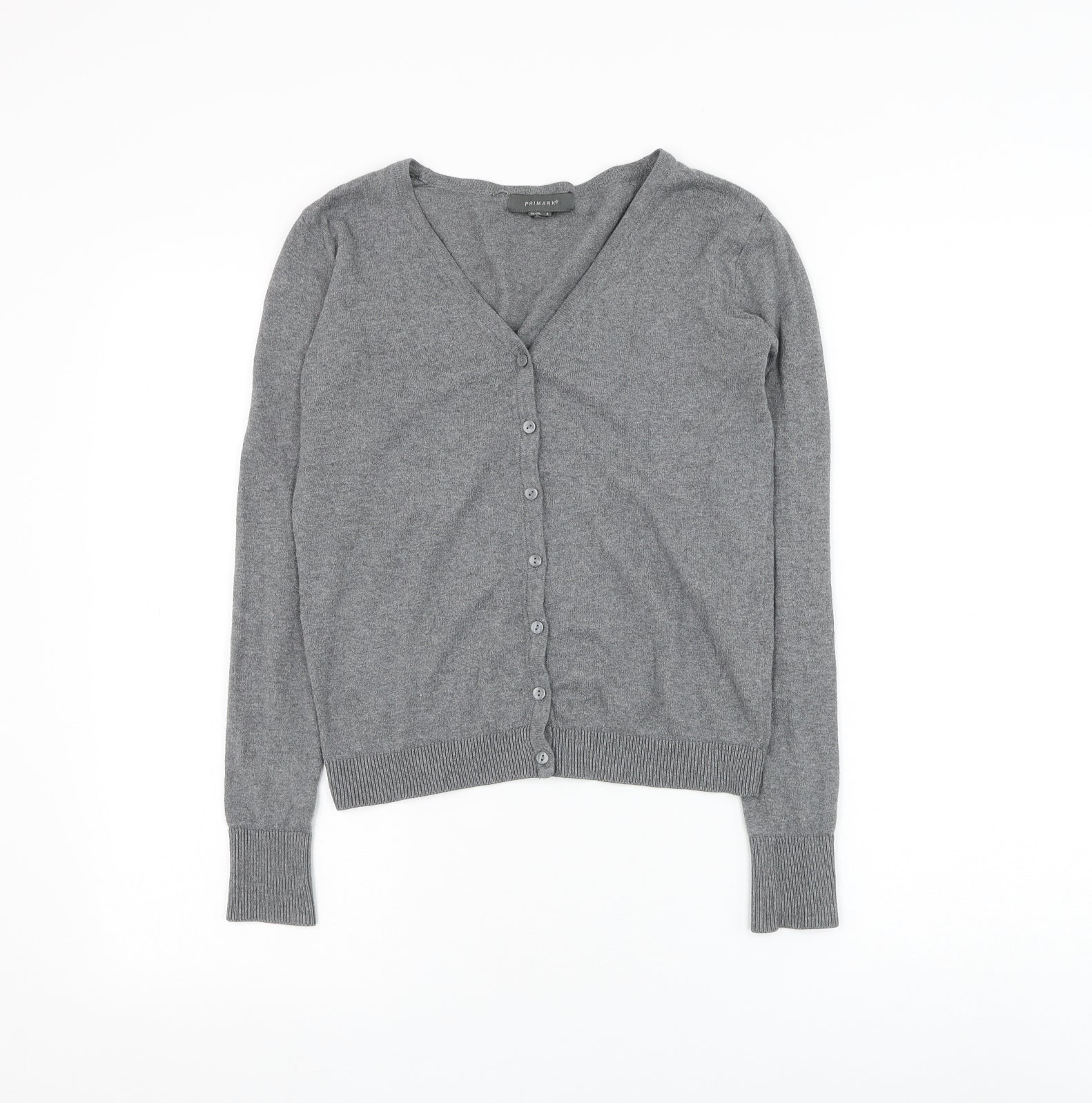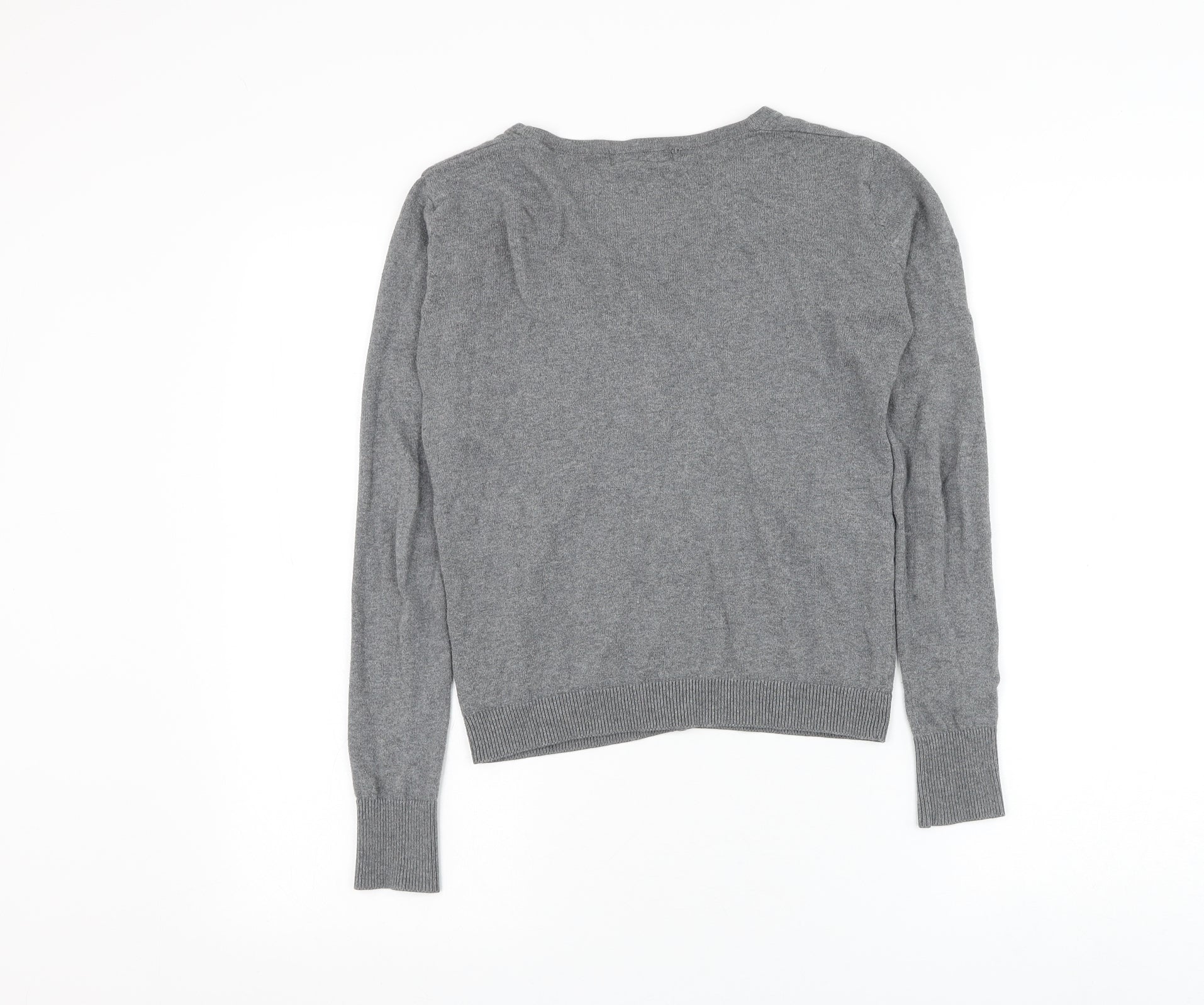 Womens Grey V-Neck Cotton Cardigan Jumper Size 4