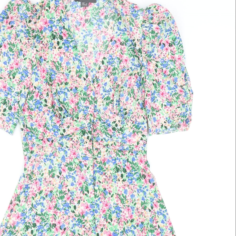 Womens Multicoloured Floral Polyester Skater Dress Size 4 V-Neck Button