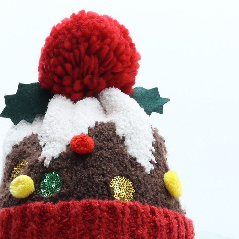 Womens Multicoloured Geometric Polyester Bobble Hat One Size - Christmas Pudding