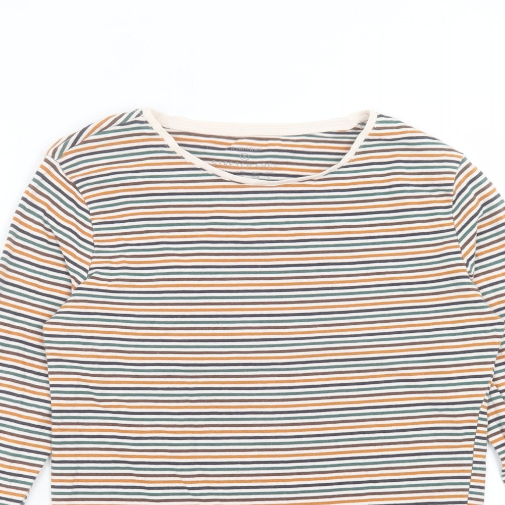 Womens Multicoloured Striped Cotton Basic T-Shirt Size S Crew Neck