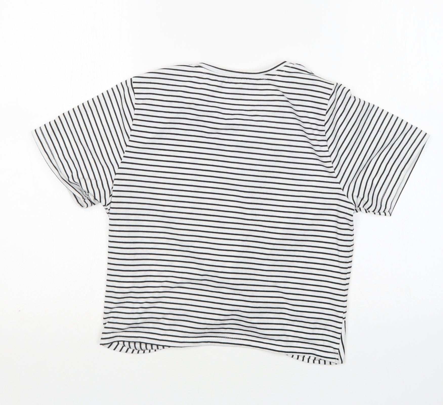 Womens Multicoloured Striped Polyester Cropped T-Shirt Size 12 Round Neck