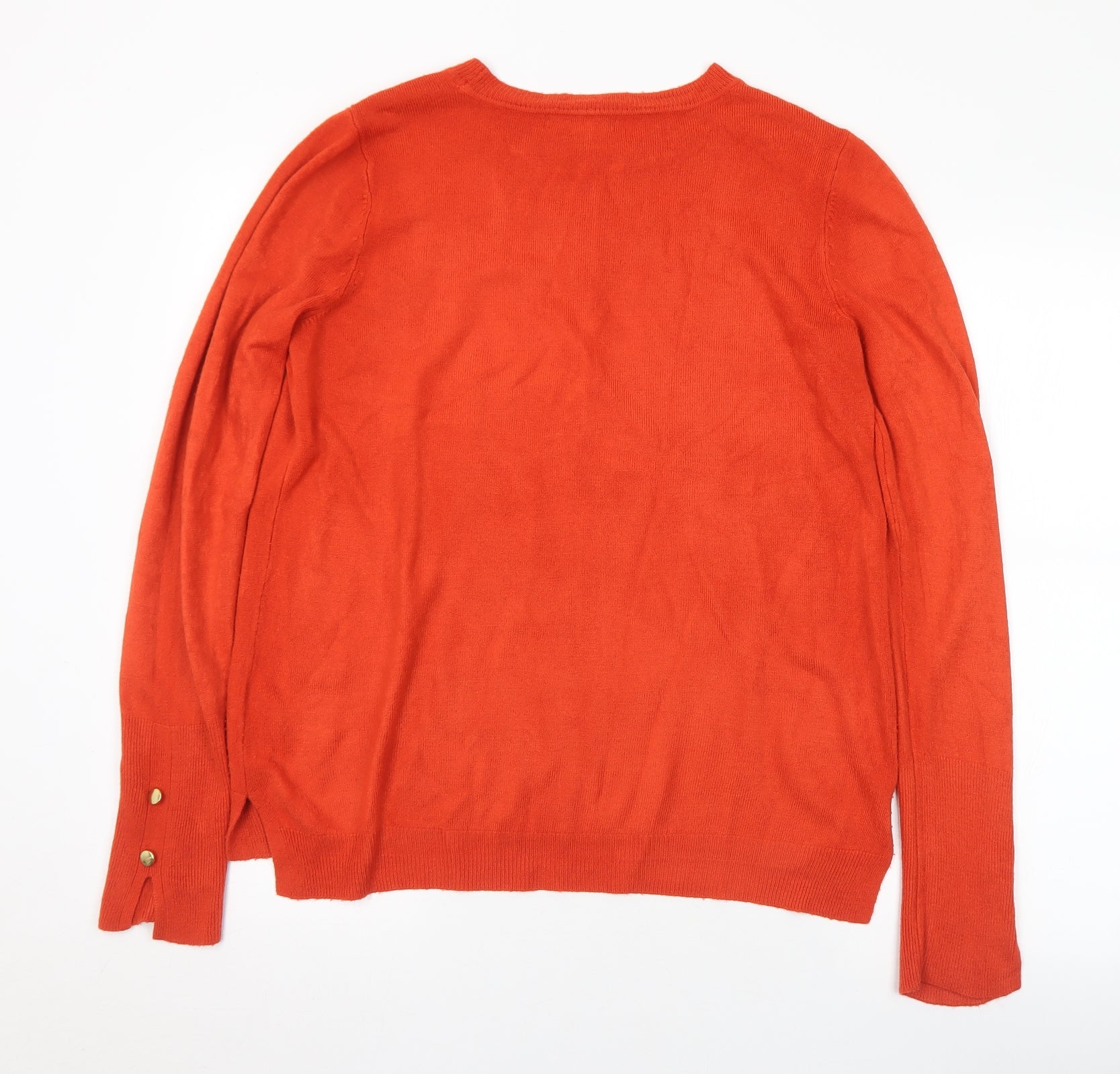 Womens Orange Crew Neck Acrylic Pullover Jumper Size 10