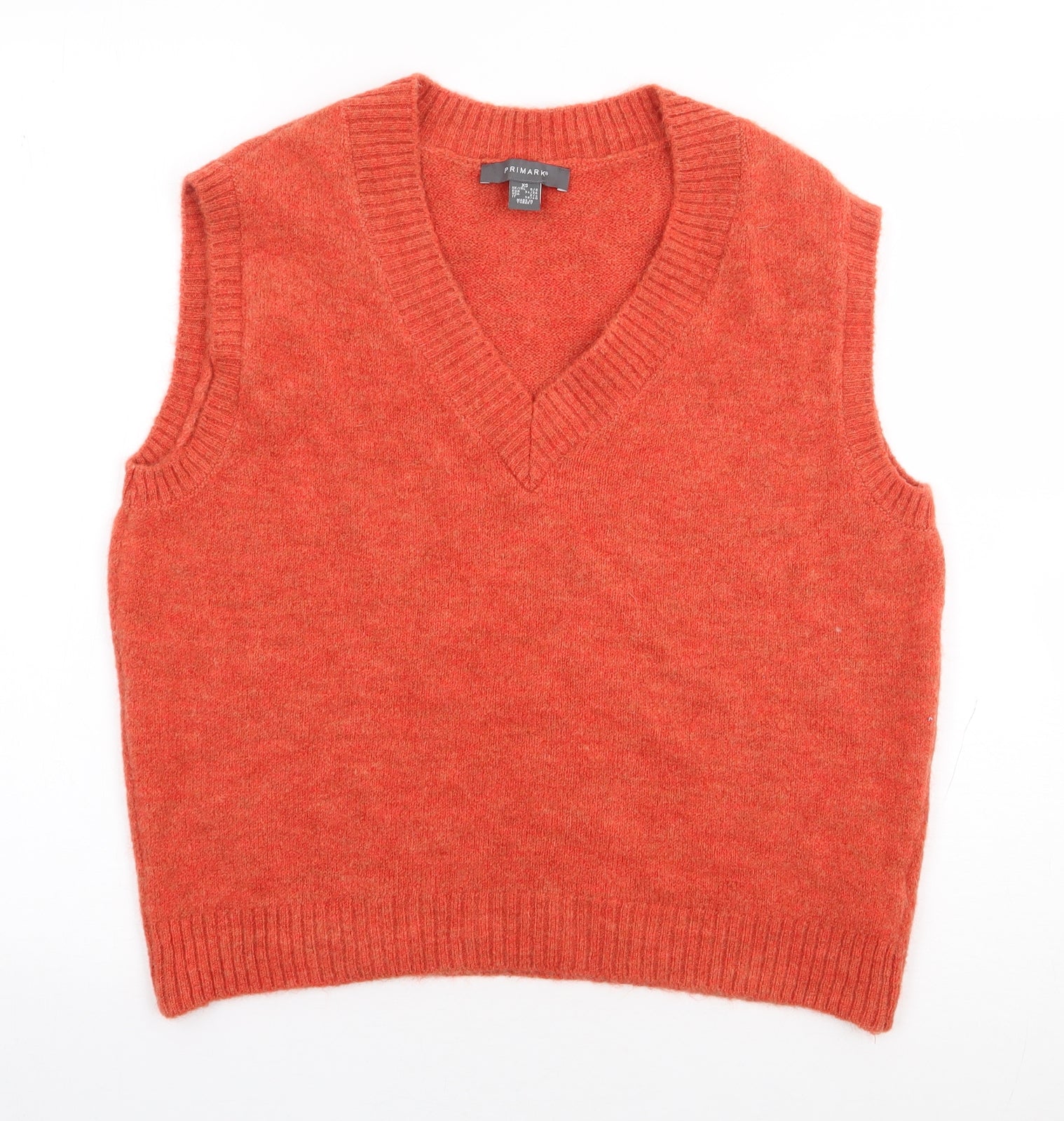 Womens Orange V-Neck Acrylic Vest Jumper Size XS
