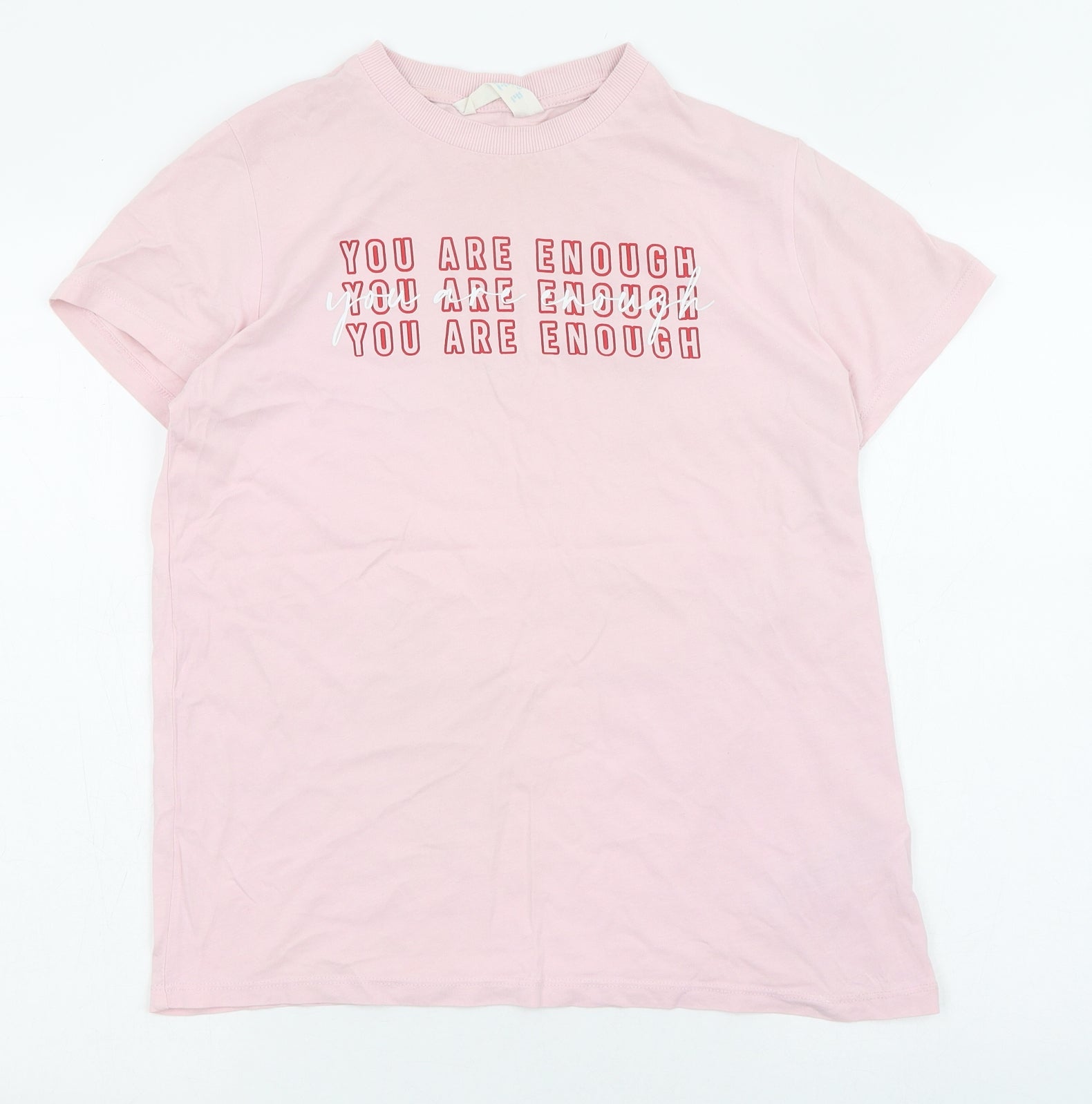 Womens Pink 100% Cotton Basic T-Shirt Size 10 Round Neck