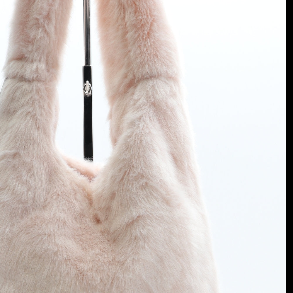 Womens Pink Polyester Top Handle Bag Size Medium - Fluffy Detail
