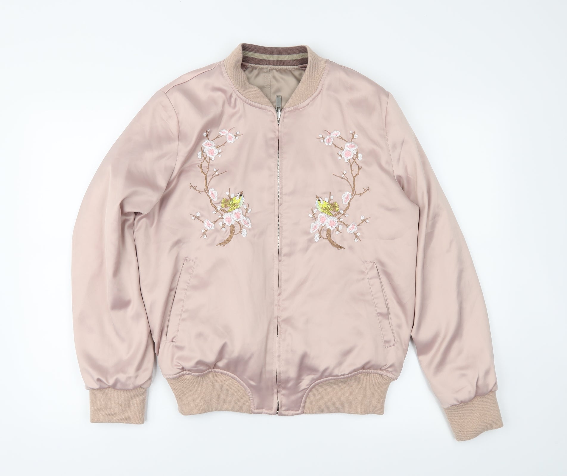 Womens Pink Satin Bomber Jacket Jacket Size 10 - Reversible