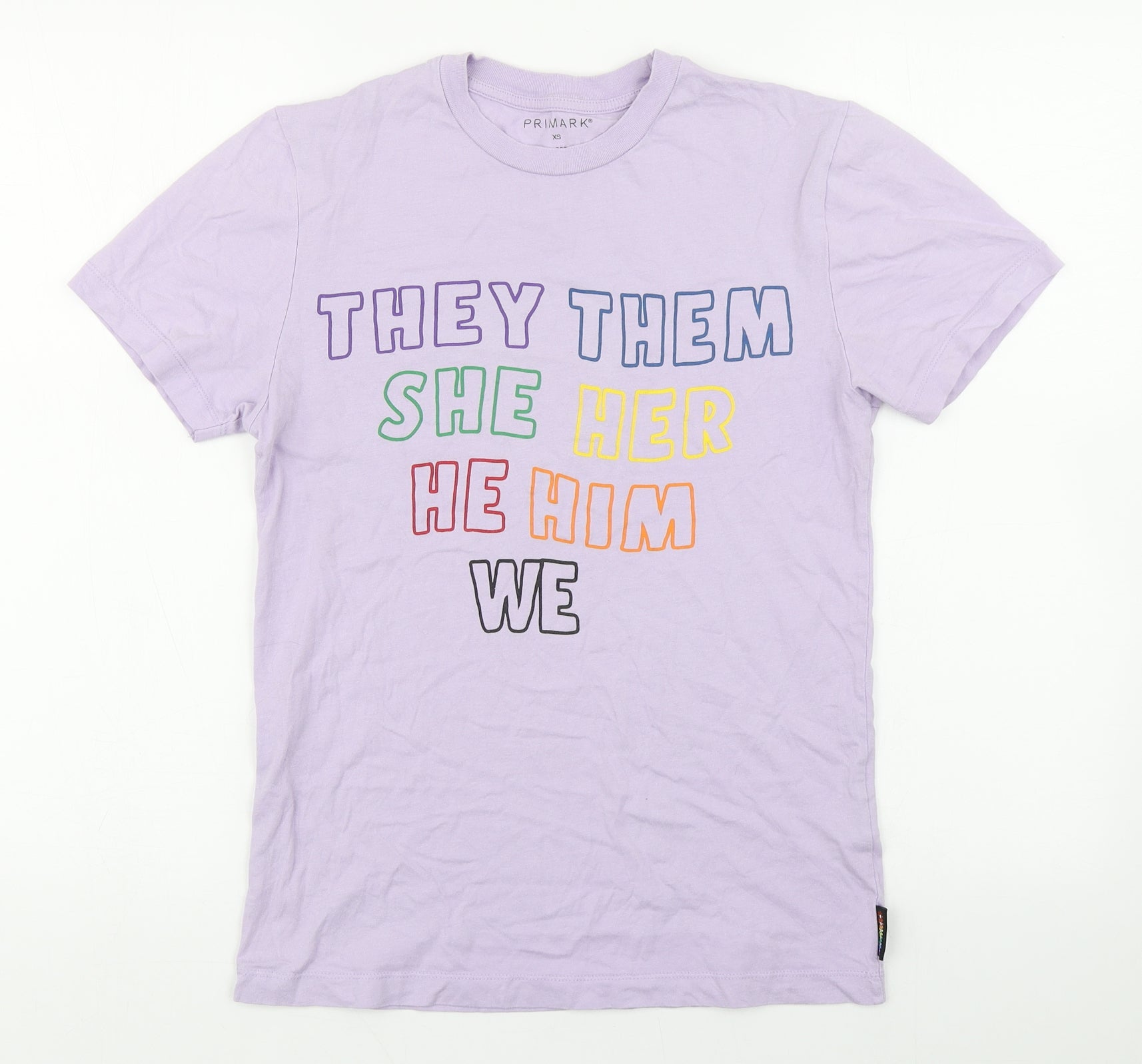 Womens Purple Cotton Basic T-Shirt Size XS Round Neck