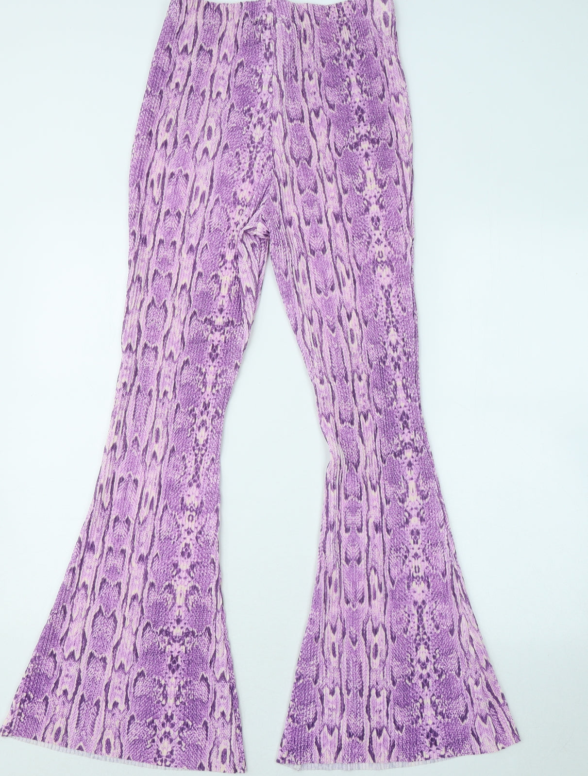 Womens Purple Geometric Polyester Trousers Size 10 L30 in Regular